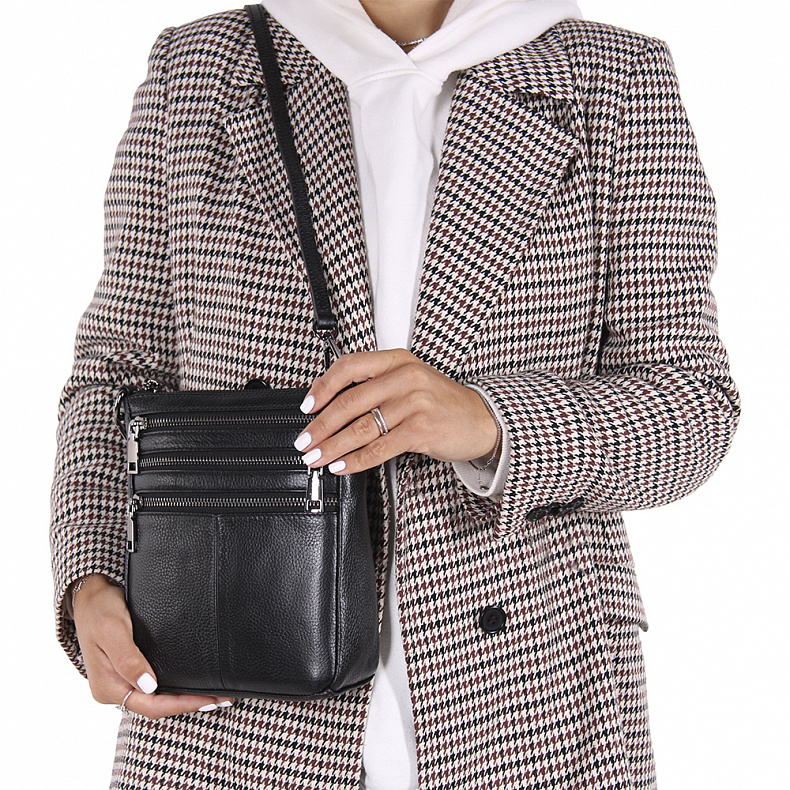 Вертикальная сумка, выполнена из натуральной кожи. Дополнена фурнитурой темное серебро. Данная модель закрывается на молнию. Каркас мягкий. Носится на плече. В комплекте съемный ремень с регулировкой длины.