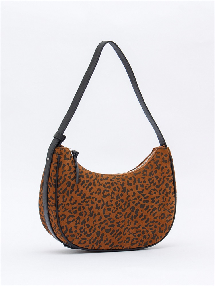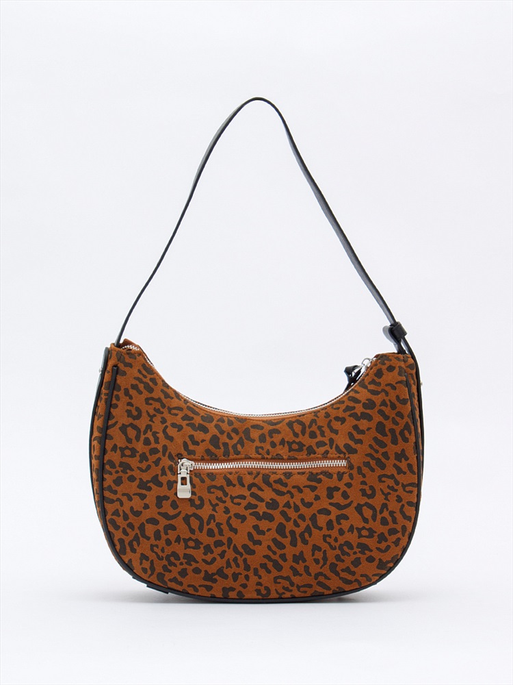 Сумка в форме полумесяц, выполнена из замши и кожи. Дополнена серебристой фурнитурой. Данная модель закрывается на молнии, носится в руке или на плече за встроенный ремень. Ремень регулируется по длине. Каркас полужесткий.