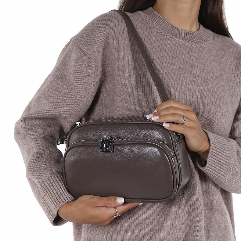 Длина (см): 22 Высота (см): 14 Вес (г): 500 Бренд: Vitelli Grassi Материал: Натуральная кожа Сумка кросс-боди, выполнена из натуральной кожи. Дополнена серебристой фурнитурой. Данная модель закрывается на молнии. Каркас мягкий. Носится на плече. В комплекте имеется съемный ремень и короткая ручка. Внутри: подкладочная ткань, на боковых частях карман открытый и на молнии. Снаружи: два отдела на молнии. На задней части карман на молнии. И на передней части карман на молнии. Комментарии к товару