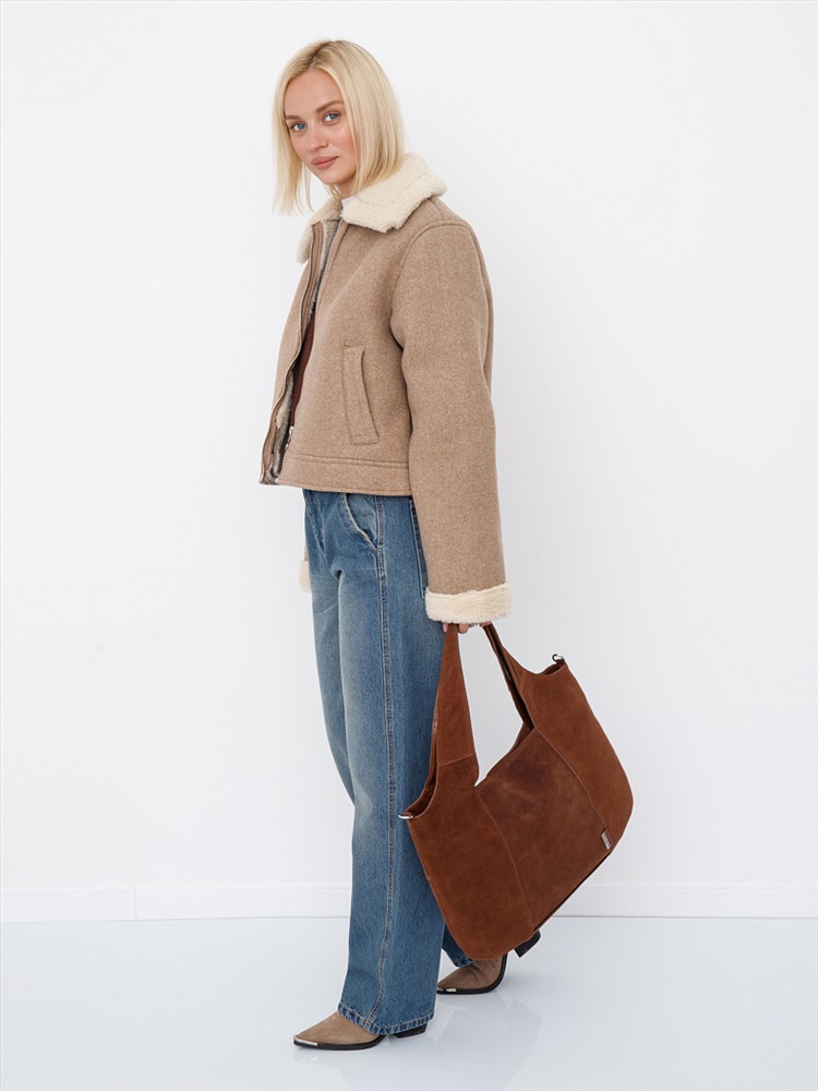 Материал: Замша Вместительная сумка-хобо, выполнена из замши. Дополнена серебристой фурнитурой. Данная модель закрывается на молнию носится на плече или в руке за встроенную ручку. Каркас мягкий.