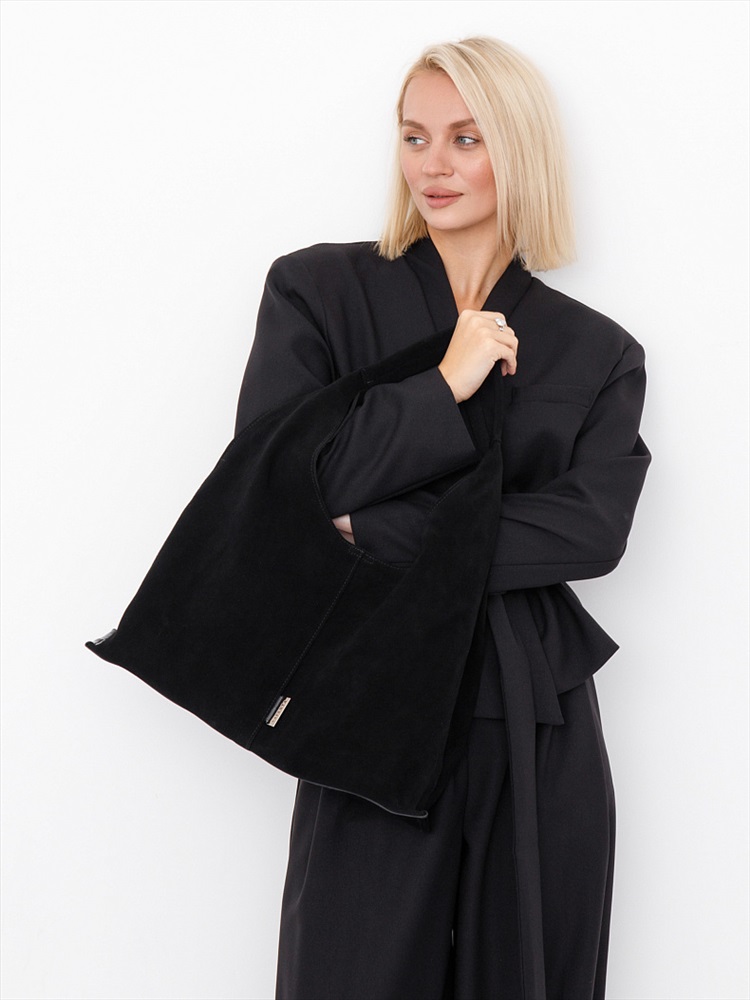 Материал: Замша Вместительная сумка-хобо, выполнена из замши. Дополнена серебристой фурнитурой. Декорирована логотипом на передней части.  Данная модель закрывается на кнопку. Носится в руке или на плече за встроенную ручку. Каркас мягкий.