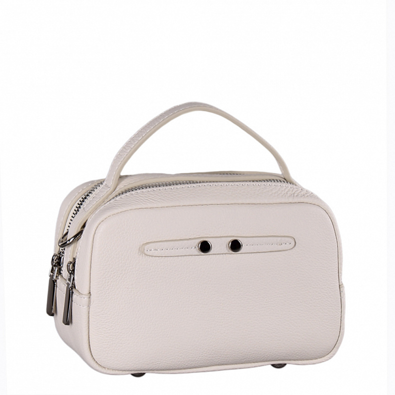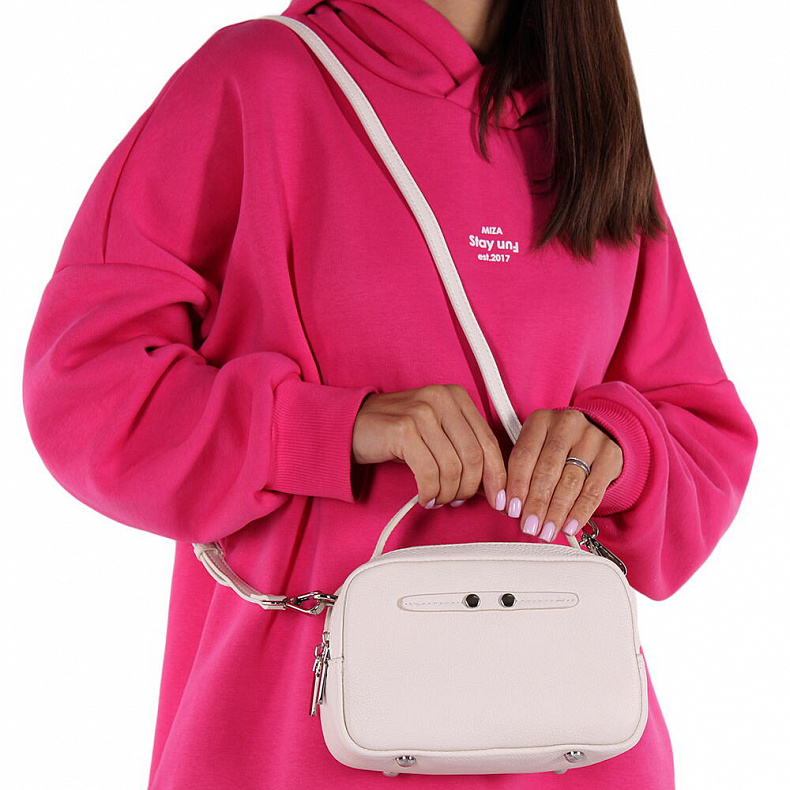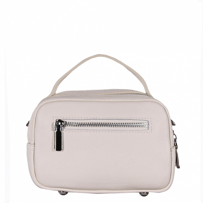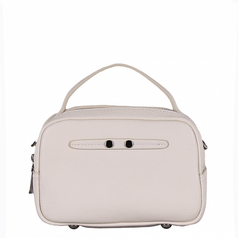 Модель кросс-боди, выполнена из натуральной кожи. Декорирована хлястиком на передней части. Дополнена серебристой фурнитурой. Данная модель закрывается на молнии. Каркас полужесткий. В комплекте съемный ремень с регулировкой длины. На дне предусмотрены ножки.