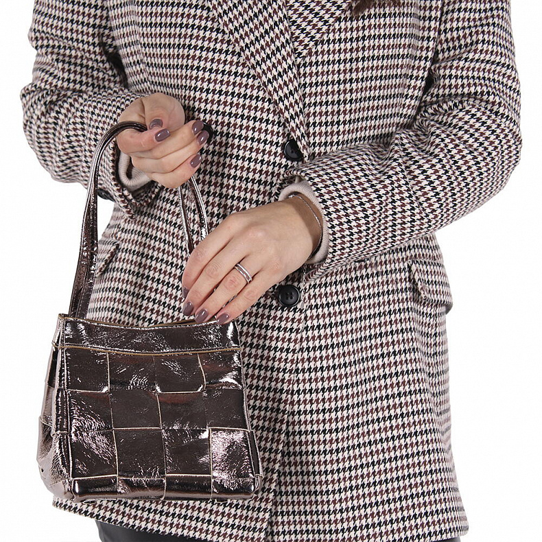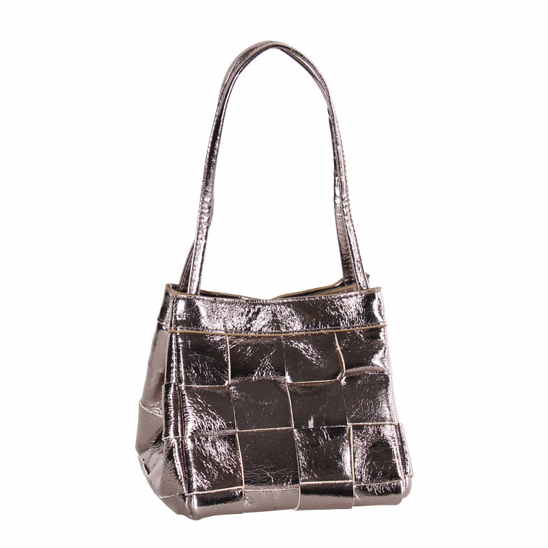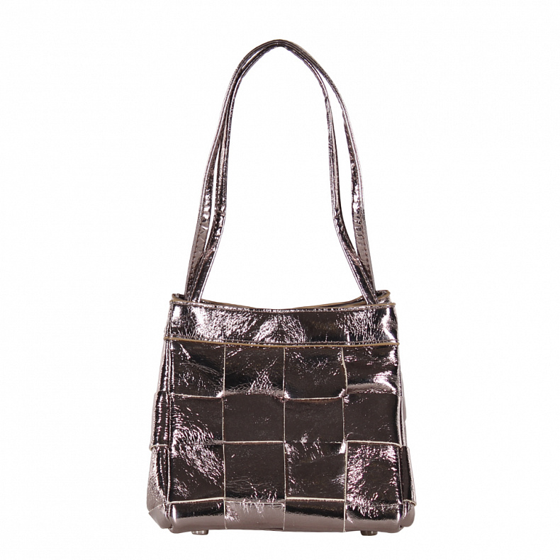 Длина (см): 15 Высота (см): 15 Вес (г): 400 Бренд: Vitelli Grassi Материал: Натуральная кожа Эффектная металлизированная сумка-плетенка, выполнена из кожи. Дополнена серебристой фурнитурой. Данная модель закрывается на кнопку. Каркас мягкий. Носится в руке за ручку или на плече за ремень. Дополнительно в комплекте имеется петелька. Внутри: подкладочная ткань. Снаружи: основной отдел закрывается на кнопку. Комментарии к товару