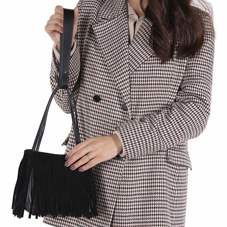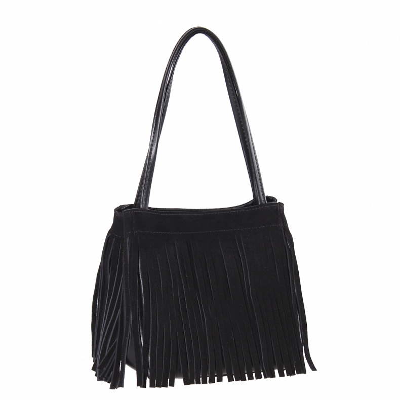 Материал: Замша Интересная сумка с бахромой, выполнена из замши. Дополнена серебристой фурнитурой. Данная модель закрывается на кнопку. Каркас мягкий. Носится в руке за ручку или на плече за ремень. Дополнительно в комплекте имеется петелька.