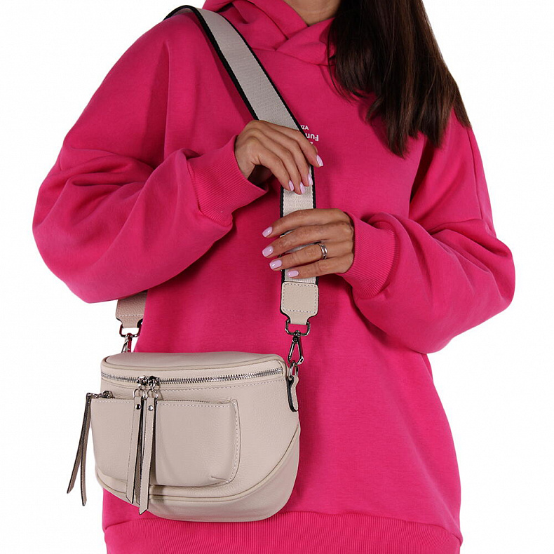 Длина (см): 20 Высота (см): 18 Вес (г): 450 Бренд: Vitelli Grassi Материал: Натуральная кожа Сумка кросс-боди. Снаружи отдел застёгивается на молнию, на передней и задней части карманы на молниях. Внутри тканевый подклад. На боковых стенках карман на молнии и открытый. Фурнитура блестящее серебро. В комплекте ремень-стропа съемный с регулировкой длины. Каркас полужесткий. Комментарии к товару