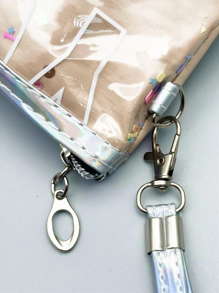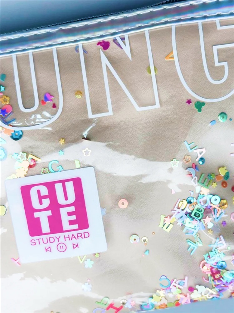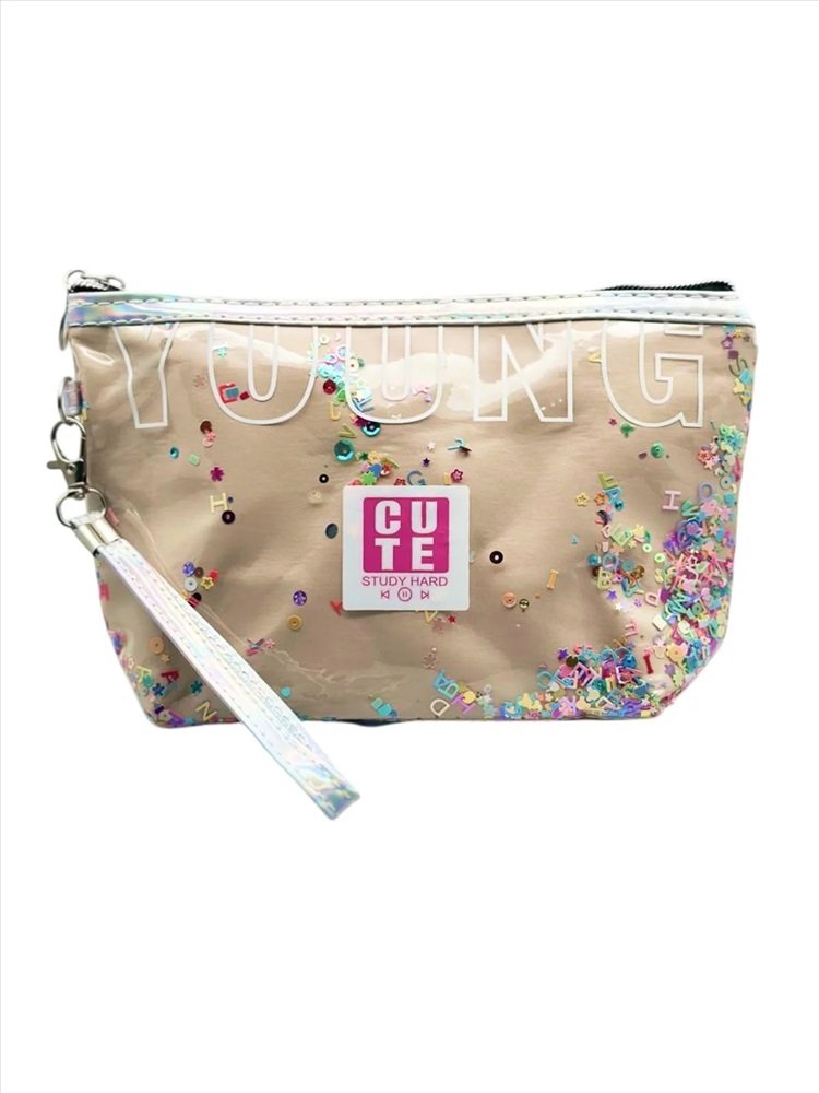 Яркая и эффектная косметичка, которая сразу привлекает внимание благодаря пересыпающимся пайеткам и модным декоративным надписям. Функциональная и вместительная — идеальный аксессуар для повседневного использования и путешествий.
