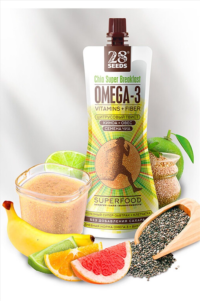 ID товара: 1136994 Сезон: Демисезон Производитель: 28seeds Срок годности (мес): 9 Вес: (г), 220 Страна бренда: Россия Страна производства: Россия Супер-завтрак Чиа ОМЕГА-3 "Цитрусовый твист" дой-пак, 220г вода, банановое пюре, яблочное пюре, апельсиновый сок, семена Чиа, киноа хлопья, грейпфрутовый сок, овсяные хлопья, сок лайма, регулятор кислотности – лимонная кислота, витаминный премикс EM28304 *изготовлен из концентрированных соков Комментарии к товару