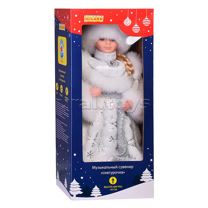 Код: 461285 Страна производитель: Китай Размеры упаковки: 42 x 19 x 12.5 см Количество в коробке: 4 Размер: 40 см. Сувенир музыкальный. - поет - танцует Работает от батареек 4 шт типа "АА" ( в комплект не входят) Поет песню "Маленькой ёлочке холодно зимой". Движение рук и головы. Материал: пластик, полиэстер, нейлон, искусственный мех. Комментарии к товару
