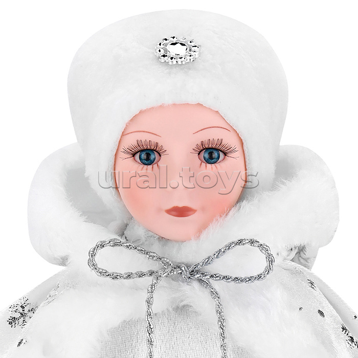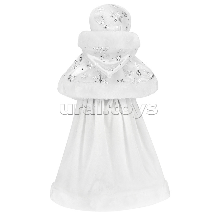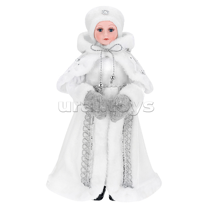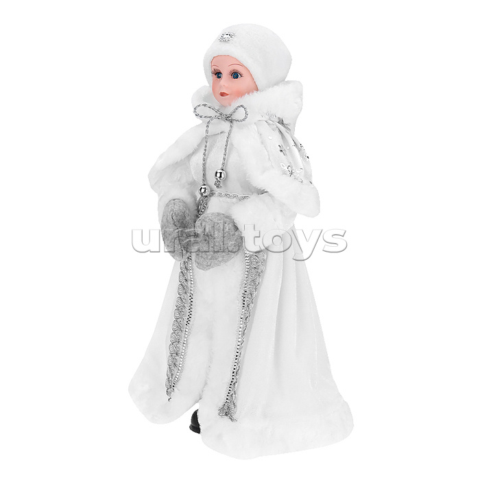 Размер: 40 см. Внучка Деда Мороза в белой шубке — прекрасная декоративная фигура под ёлку, которая отлично впишется в традиционный новогодний интерьер. Она добавит ярких красок и волшебного настроения. Материал: пластик, текстиль, металл.