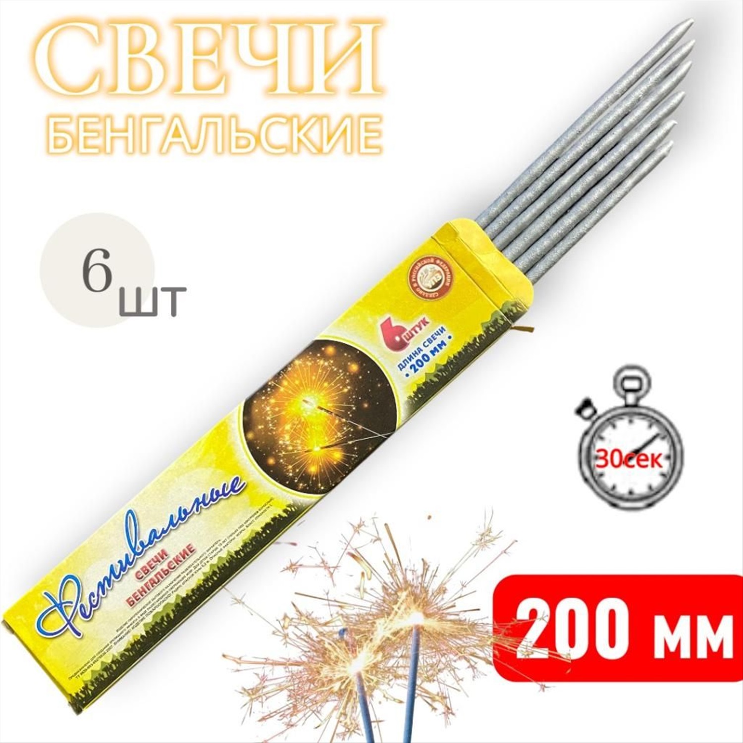 Вес уп.(гр) ~: 40 Свеча бенгальская 200мм, 30сек Цена за упаковку 6шт