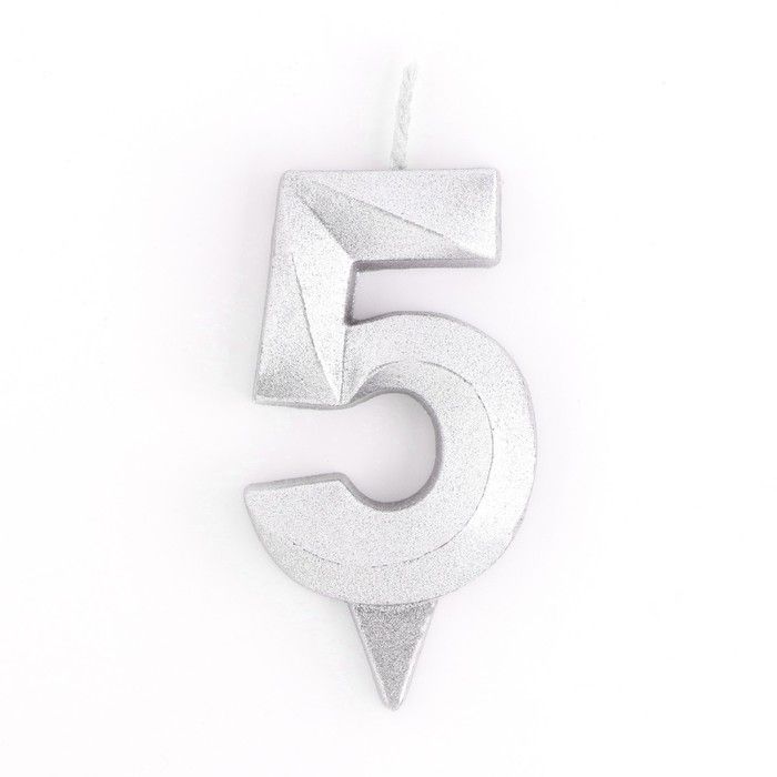 Свеча для торта "Грань" серебряная - цифра "5" 7,8 см