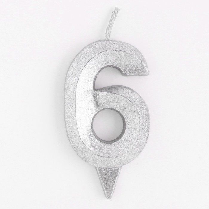 Свеча для торта "Грань" серебряная - цифра "6" 7,8 см