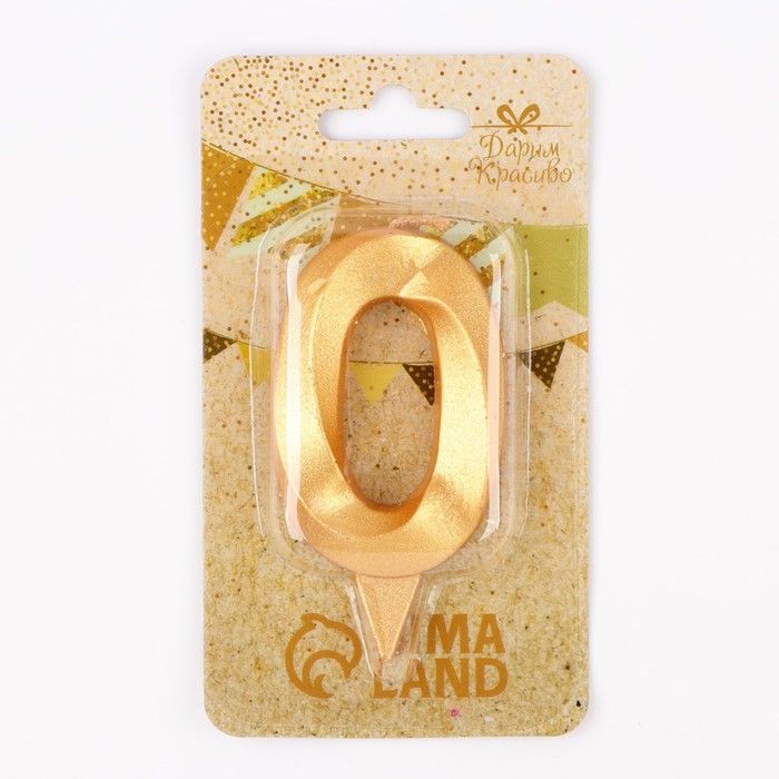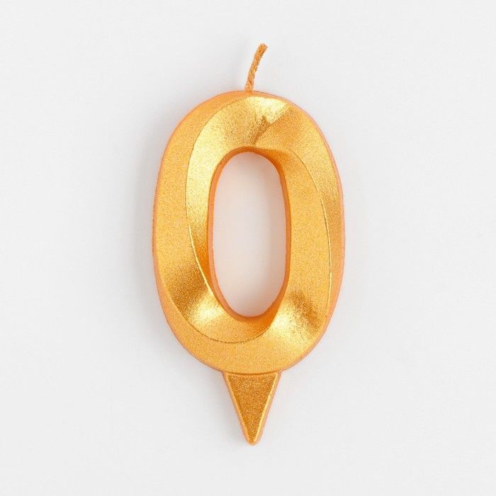 Свеча для торта "Грань" золотая - цифра "0" 7,8 см