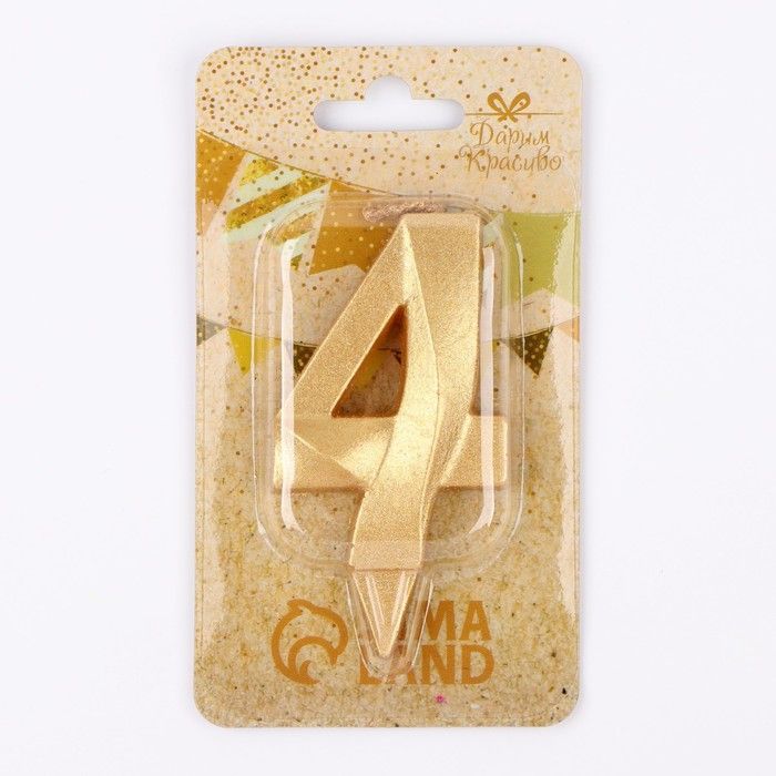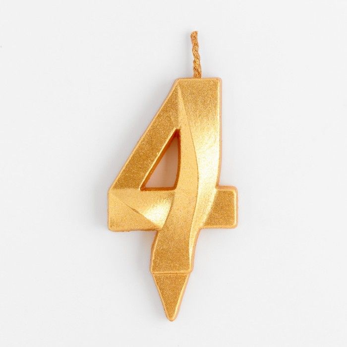 Свеча для торта "Грань" золотая - цифра "4" 7,8 см