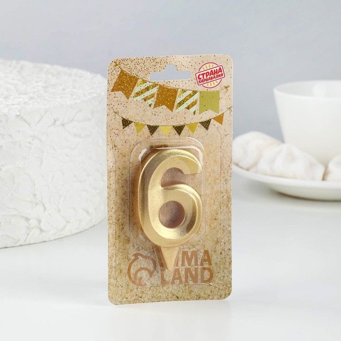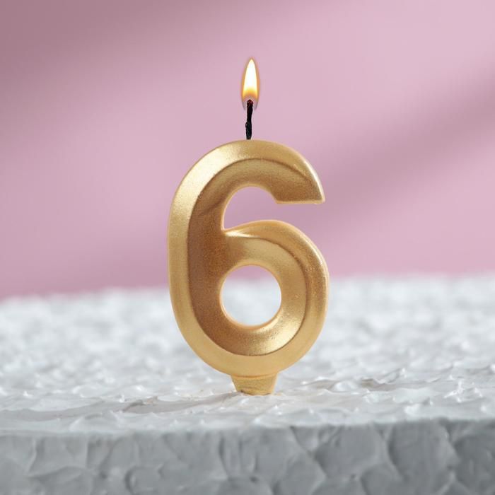 Свеча для торта "Грань" золотая - цифра "6" 7,8 см