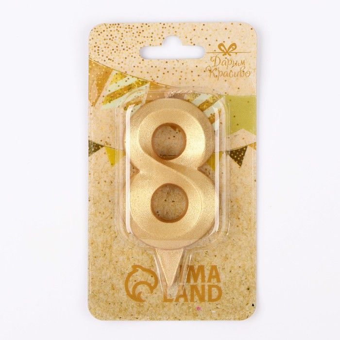 Свеча для торта "Грань" золотая - цифра "8" 7,8 см
