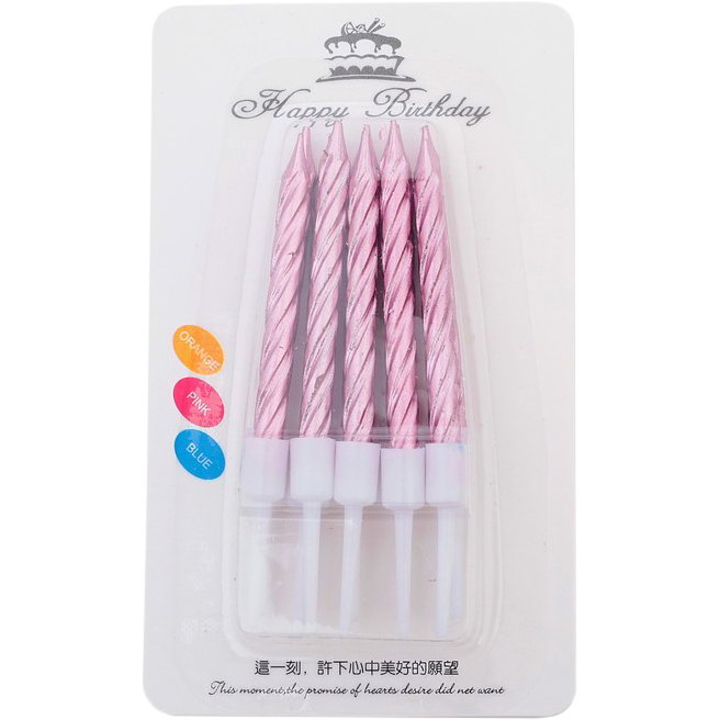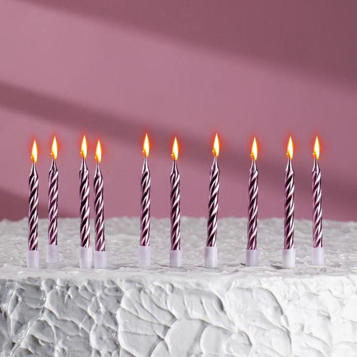Свечи для торта 7см "Металлик" розовые с подставками (упаковка 10 шт.)