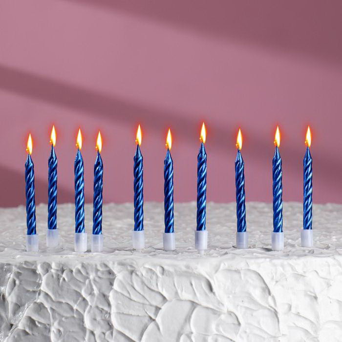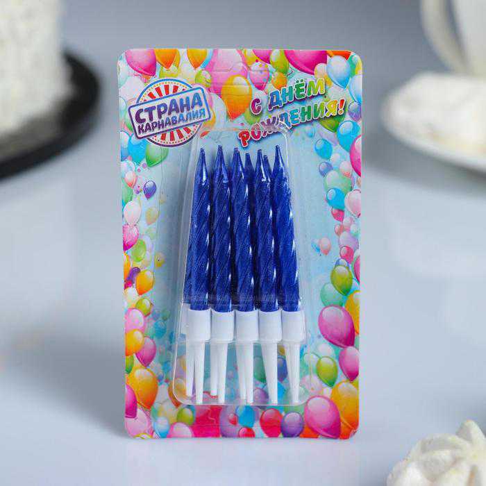 Свечи для торта 7см "Металлик" синие с подставками (упаковка 10 шт.)