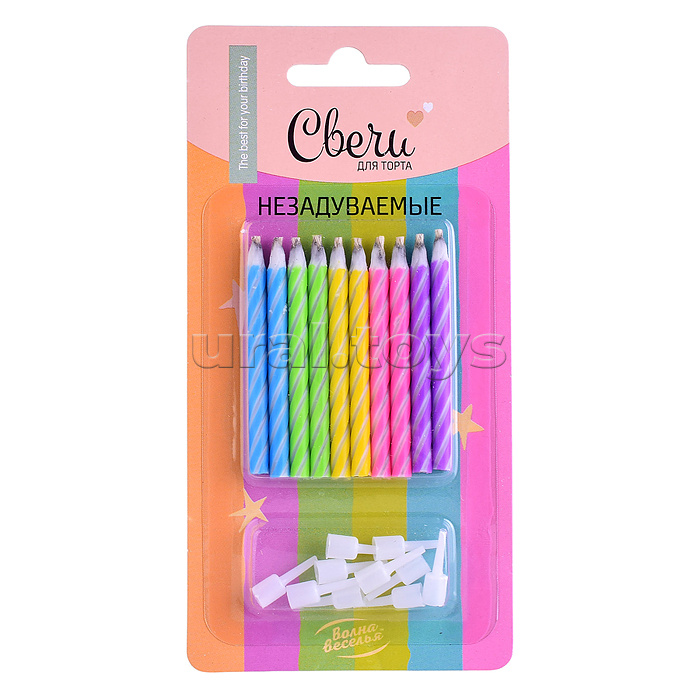 Свечи Спирали, Негаснущие огни, Нежный микс, Макарунс, 0,5*5,5 см, 10 шт. с держателем