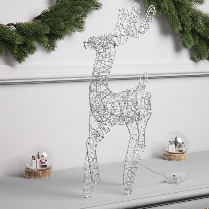 Габариты: 45 x 22 x 7 Страна: Китай В боксе: 12 шт Состав: Металл, от батареек (не входят в комплект), пластик Материалы: металл, от батареек (не входят в комплект), пластик Фасовка: по 1 шт Индивидуальная упаковка: Пакет Габариты товара: 45 см × 22 см × 6 см Сертификат: Не подлежит сертификации Цвет свечения: Тёплый белый Режим работы: Постоянное свечение Цвет: Белый Высота, см: 45 Гарантийный срок, мес.: 6 Количество светодиодов: 20 Тематика праздника: Новый год Материал: Металл, Пластик Материал: Металл Тип питания: От батареек Эффект снежного вихря: Нет Стиль: Скандинавский Комментарии к товару