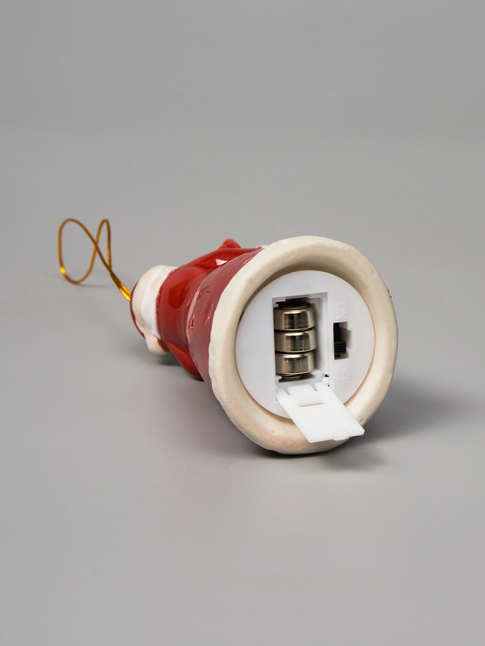 Габариты: 9,6 x 5,1 x 5,1 Страна: Китай В боксе: 108 шт Состав: Батарейка, керамика Материалы: батарейка, керамика Фасовка: по 1 шт Индивидуальная упаковка: пупырчатая пленка Габариты товара: 9,6 см × 5,1 см × 5,1 см Сертификат: Не подлежит сертификации Цвет свечения: Тёплый белый Набор: Нет Цвет: Красный Высота, см: 5,1 Количество светодиодов: 1 Количество батареек: 3 Диаметр шара, см: 5,1 Гарантийный срок, мес.: 6 Символ года: Нет Тематика праздника: Новый год Материал: Керамика Типоразмер батареек: LR44 (V13GA, AG13, LR1154, SR44) Тип питания: От батареек Стиль: Скандинавский Светодиодный подвес «Дед Мороз» станет идеальным праздничным украшением для вашей новогодней ёлки. В миниатюрной керамической форме он излучает тёплый белый свет, создавая уютную атмосферу. Уникальный декор привнесёт радость и немного волшебства в ваш дом благодаря своему мерцающему сиянию, работающему от батареек. Особенности