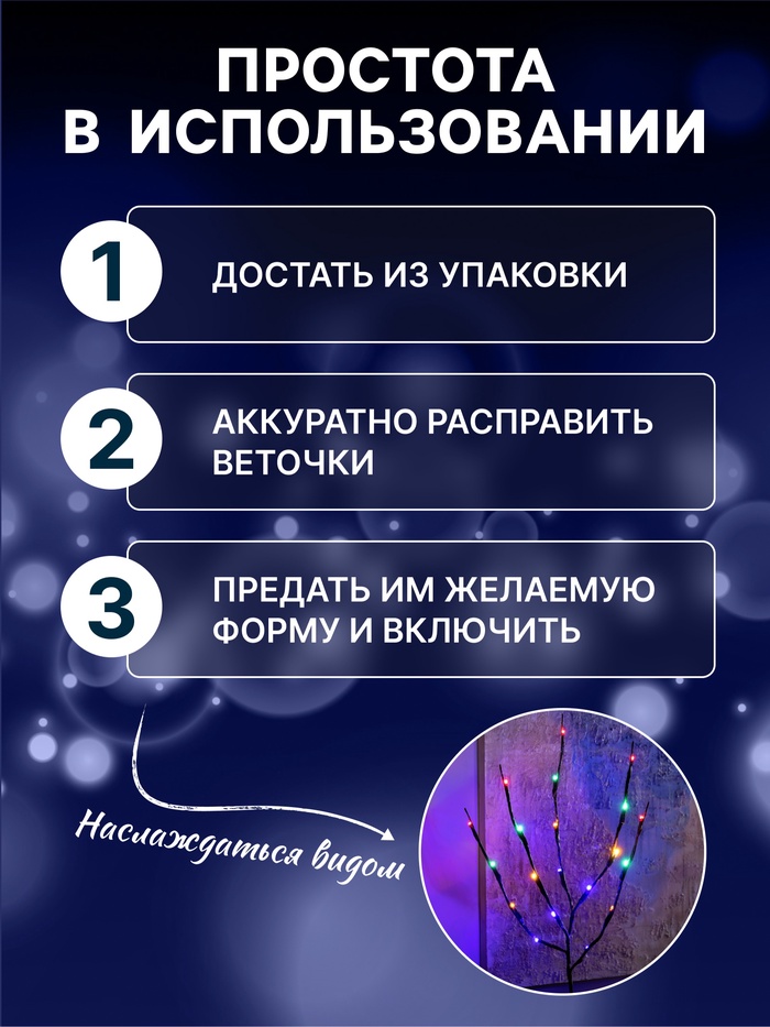 Производитель: Luazon Lighting Габариты: 35,5 x 10 x 2 Страна: Китай В боксе: 200 шт В наборе: 1 шт Состав: Металл, пластик, светодиоды Материалы: металл, пластик, светодиоды Фасовка: по 1 шт Индивидуальная упаковка: Пакет (БОПП, полиэтилен, ПВХ, дой-пак) Габариты товара: 35 см × 5 см × 2 см Сертификат: ЕАС Цвет свечения: Мульти Режим работы: Постоянное свечение Цвет: Коричневый Высота, см: 70 Напряжение, В: 3 Гарантийный срок, мес.: 6 Количество светодиодов: 20 Степень защиты: IP20 Вид декора: Ветки декоративные Тип питания: От батареек Материал стебля: Пластик Материал цветка: Пластик