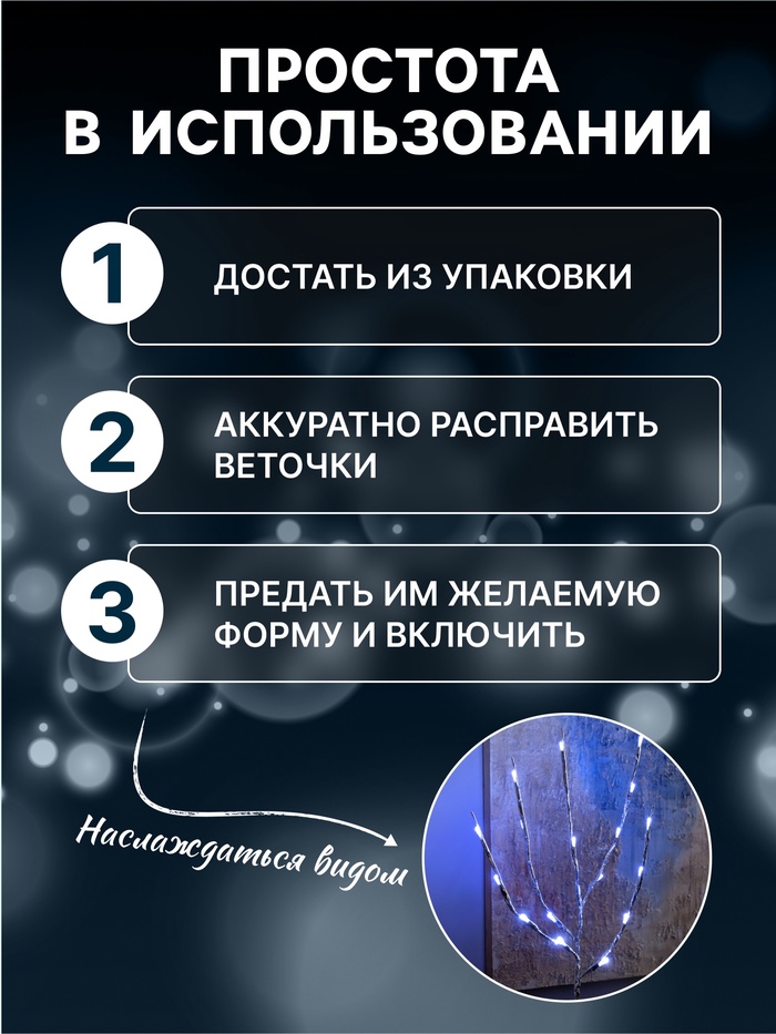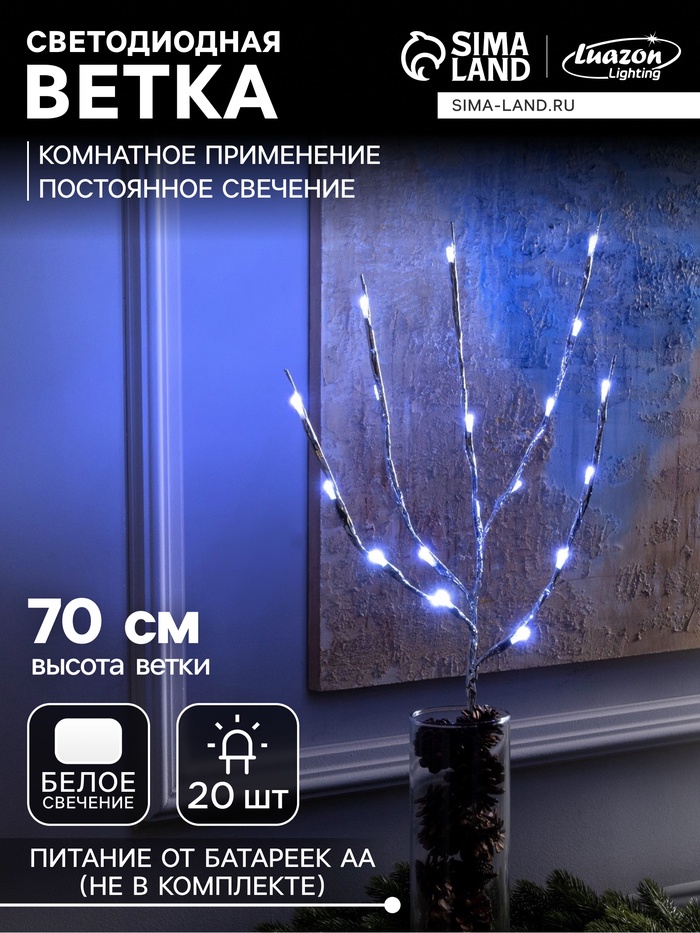 Габариты: 35,5 x 10 x 2 Страна: Китай В боксе: 200 шт В наборе: 1 шт Состав: Металл, пластик, светодиоды Материалы: металл, пластик, светодиоды Фасовка: по 1 шт Индивидуальная упаковка: Пакет (БОПП, полиэтилен, ПВХ, дой-пак) Габариты товара: 35 см × 5 см × 2 см Сертификат: ЕАС Цвет свечения: Белый Режим работы: Постоянное свечение Цвет: Серебристый Высота, см: 70 Напряжение, В: 3 Гарантийный срок, мес.: 6 Количество светодиодов: 20 Степень защиты: IP20 Вид декора: Ветки декоративные Тип питания: От батареек Материал стебля: Пластик Материал цветка: Пластик Комментарии к товару
