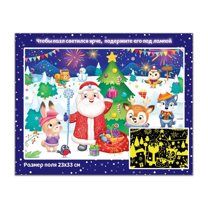 Габариты: 25 x 20 x 4 Страна: Китай В боксе: 36 шт Состав: Картон, микрогофрокартон Материалы: картон, микрогофрокартон Фасовка: по 1 шт Индивидуальная упаковка: Цветная картонная коробка Сертификат: ЕАС Для кого: Унисекс Возраст: От 3 лет Ширина собранного пазла, см: 23 Длина собранного пазла, см: 33 Количество элементов: 35 Тематика: Детская, Новогодняя Тематика праздника: Новый год Возраст: Детский Материал: Картон Развитие навыков: Внимание, Моторика Тип пазлов: Классические Форма: Прямоугольник Особенности: Светящиеся Это не просто пазл, а волшебная игра-головоломка! Достаточно выключить свет в комнате, и вы увидите, как собранная картинка благодаря особой краске начнёт светиться в темноте. Игра с пазлами поднимет настроение и надолго привлечёт внимание малыша, а также поспособствует развитию цветового и зрительного восприятия, внимательности и логического мышления. Пазл состоит из крупных деталей, что очень удобно для маленьких пальчиков. ДополнительноВ наборе 35 деталей. Размер одной детали: 4.5 × 4.5 см. Размер игрового поля: 23 × 33 см. Рекомендовано детям старше 3 лет. Комментарии к товару