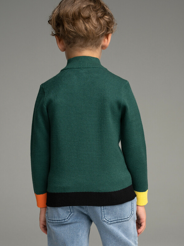 Свитер из вязаного трикотажа. Застежка на молнию. Приятный к телу материал, обладающий высокой гигроскопичностью - 50% вискоза. Воротник, манжеты и низ изделия в рубчик.