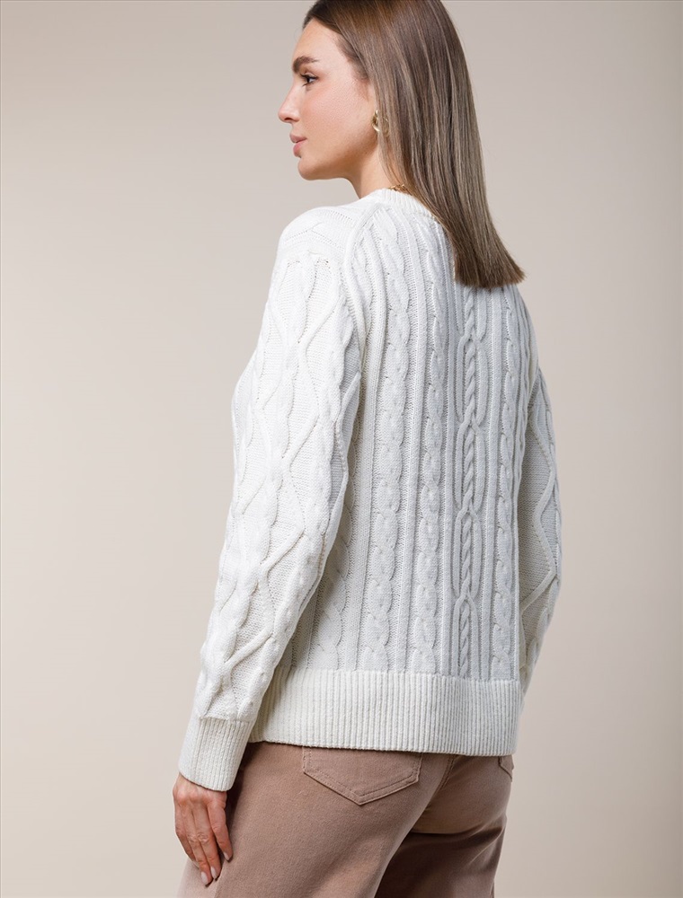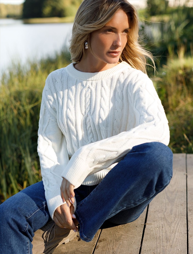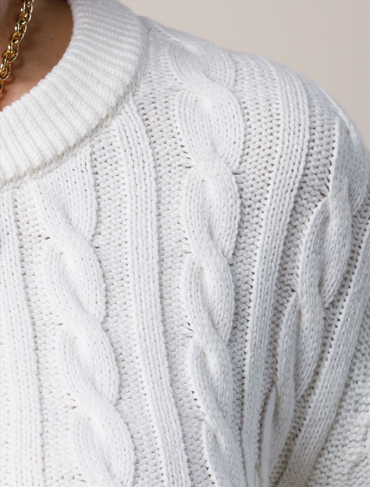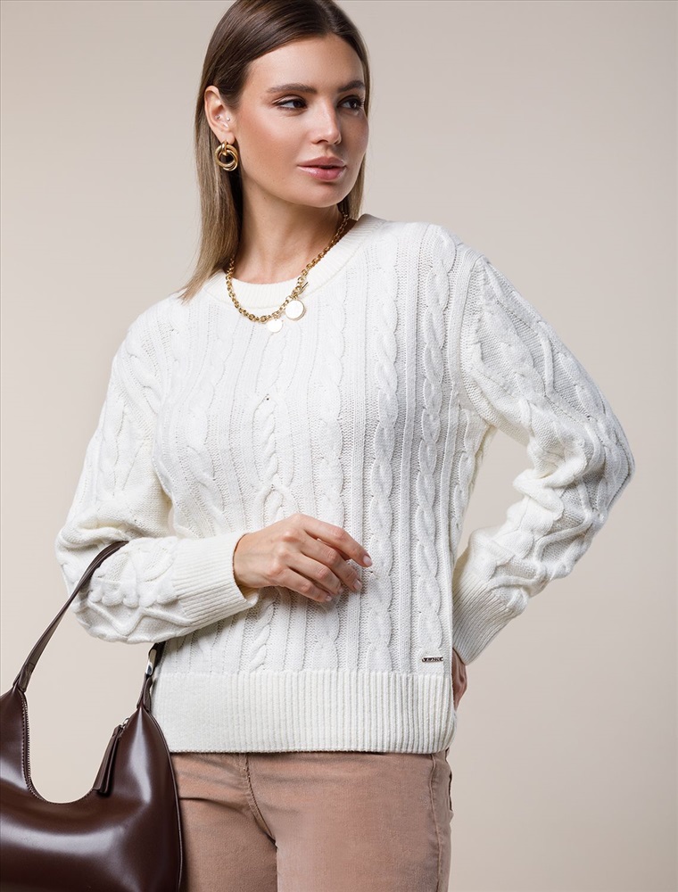 Состав: 60%Хлопок 40%ПАН (акрил); Параметры модели на первом фото: Рост 172, бюст 88, талия 64, бедра 88 Свитер выполнен из мягкой хлопковой пряжи фактурной вязки с добавлением акрила. Модель связана изнаночной петлей, в сочетании с которой узор косы и высокие рибаны поддерживают ирландский стиль, который всегда в тренде. Круглый вырез. Свободная посадка.