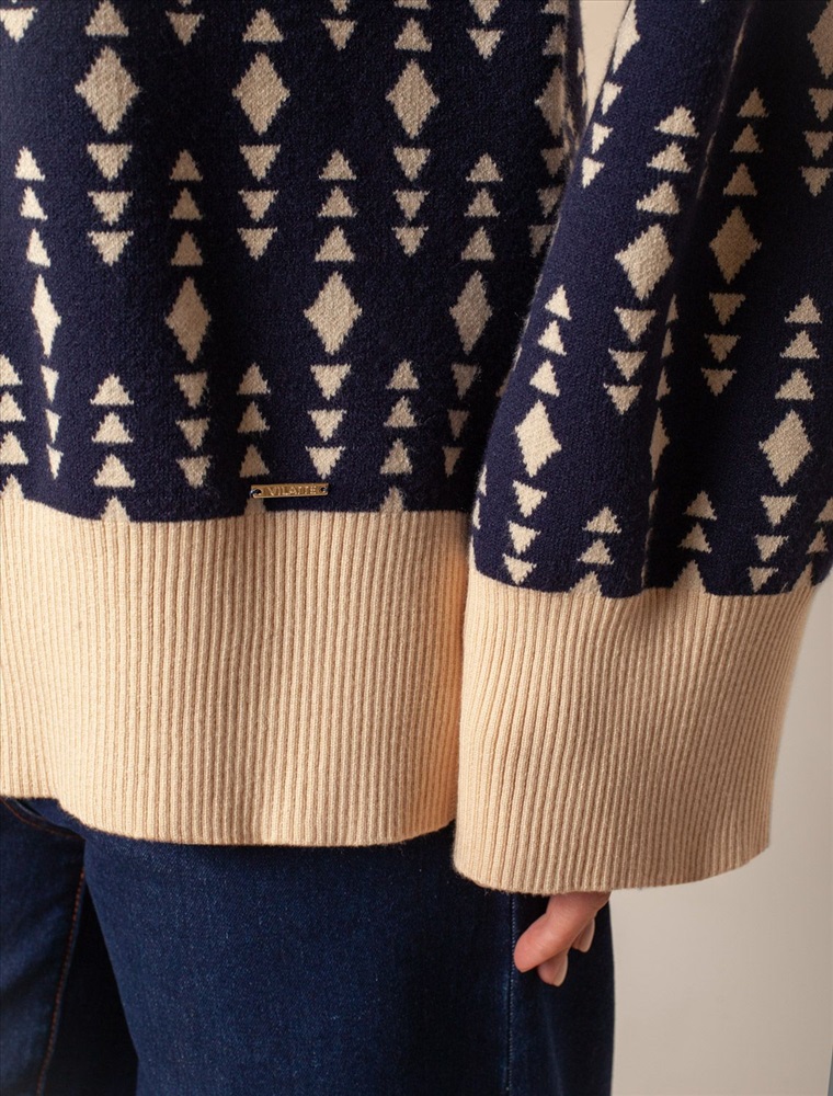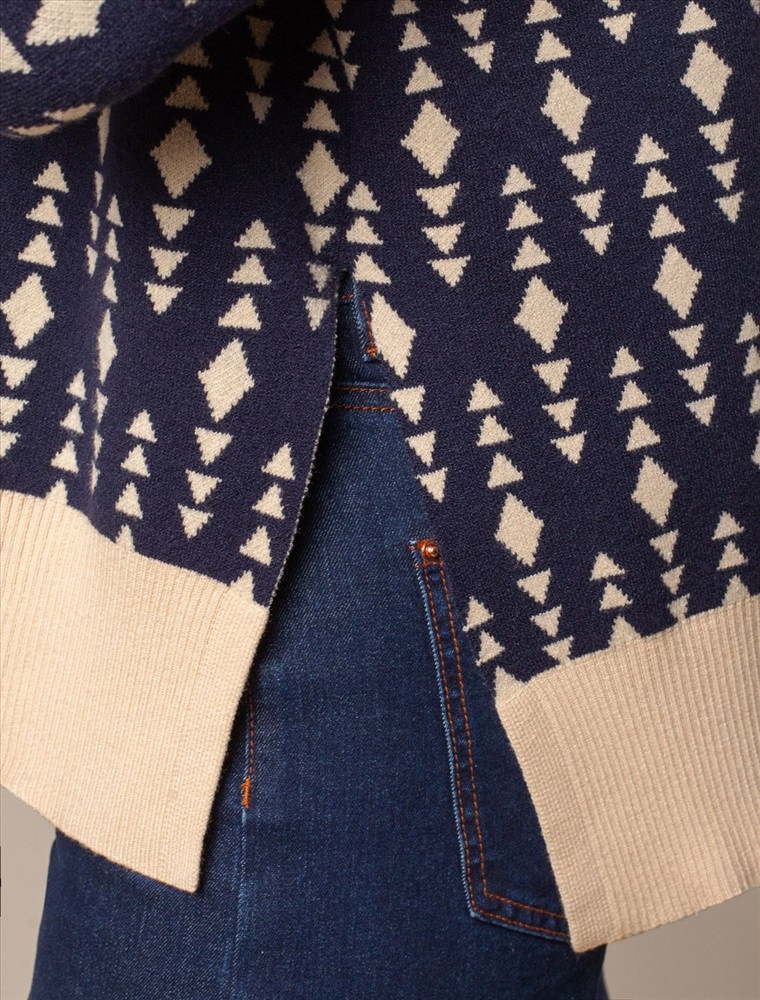 Свитер с боковыми разрезами жаккардовой вязки с кашемиром
