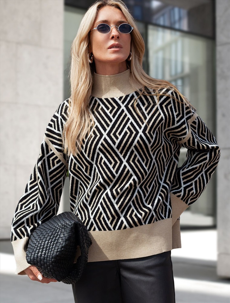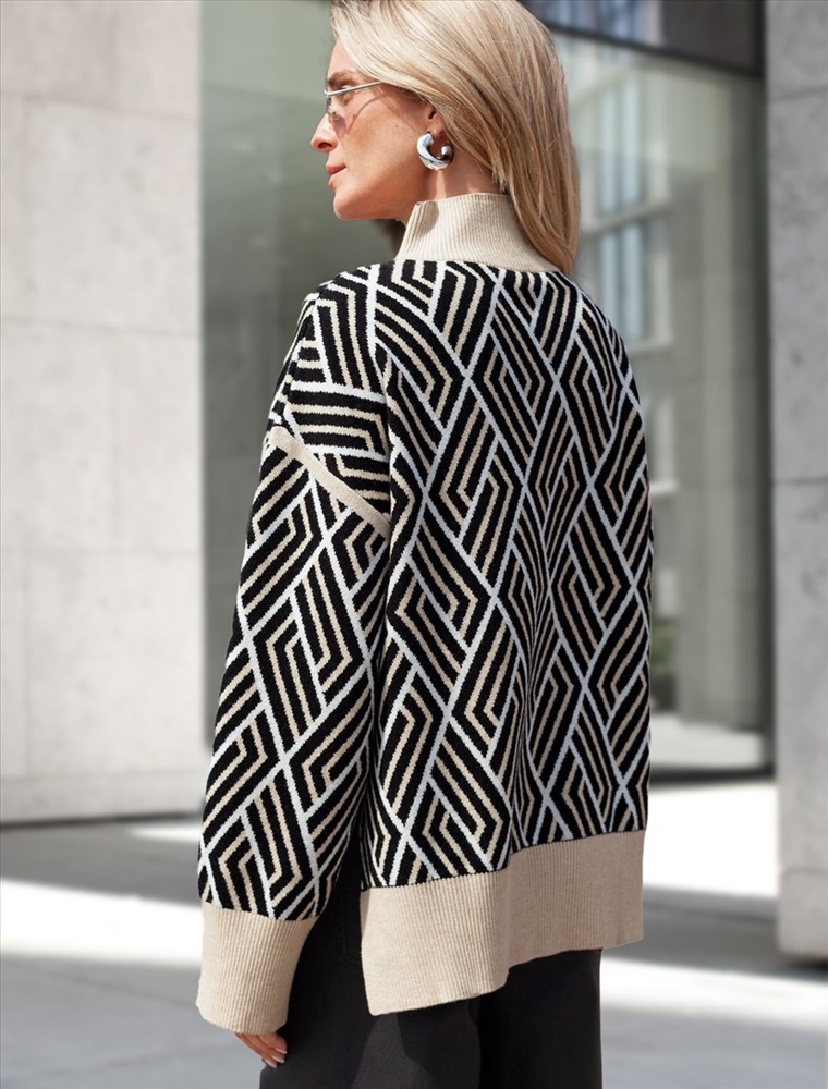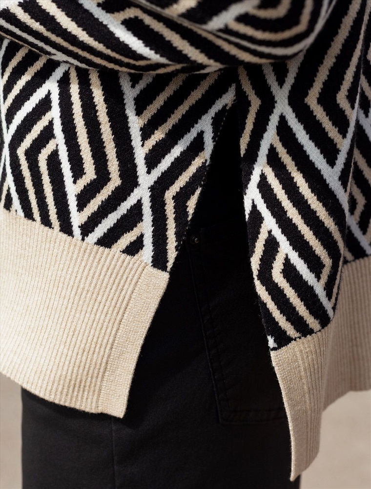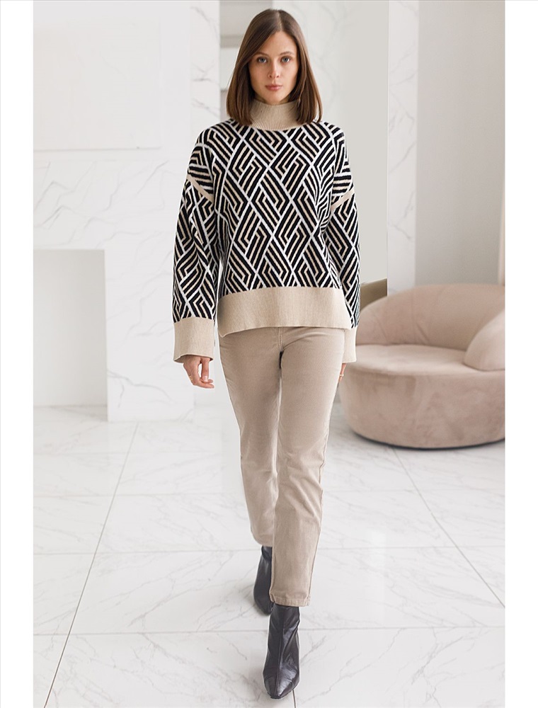 Свитер жаккардовой вязки выполнен из нежной пряжи на основе вискозы с добавлением кашемира. Свободная модель со спущенным плечом дополнена боковыми разрезами, что делает образ еще более расслабленным. Совет стилиста: такой джемпер может стать ключевым акцентом в сдержанном комплекте. Выбирайте однотонные низы в тон широкой рибаны или на контрасте.