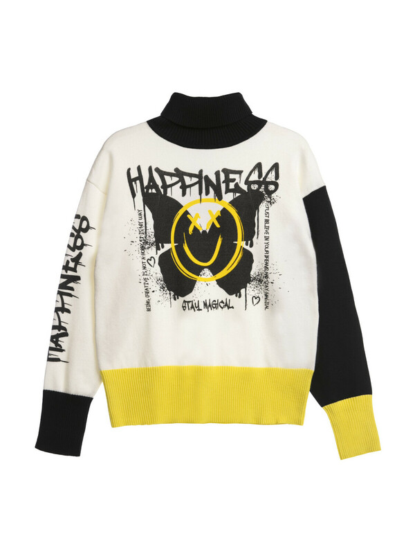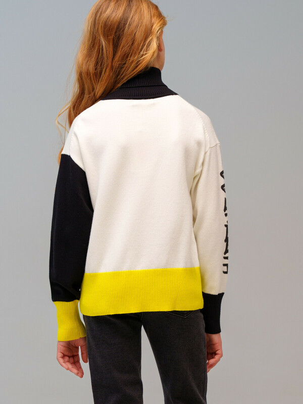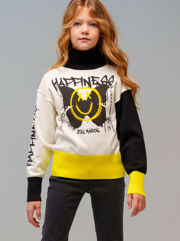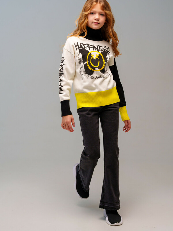 Производитель: PlayToday Свитер для девочки подростка. Свитер из вязаного трикотажа с добавлением вискозы. Модный свитер жаккардовой вязки с высоким содержанием вискозы. Вискоза хорошо поглощает влагу, отлично пропускают воздух. Изделия приятны к телу, и не вызывают раздражения.  Модель из капсульной коллекции DIGITAL TRANSFORM (ДИДЖИТАЛ ТРАНСФОРМ). Соберите полный образ в едином стиле!
