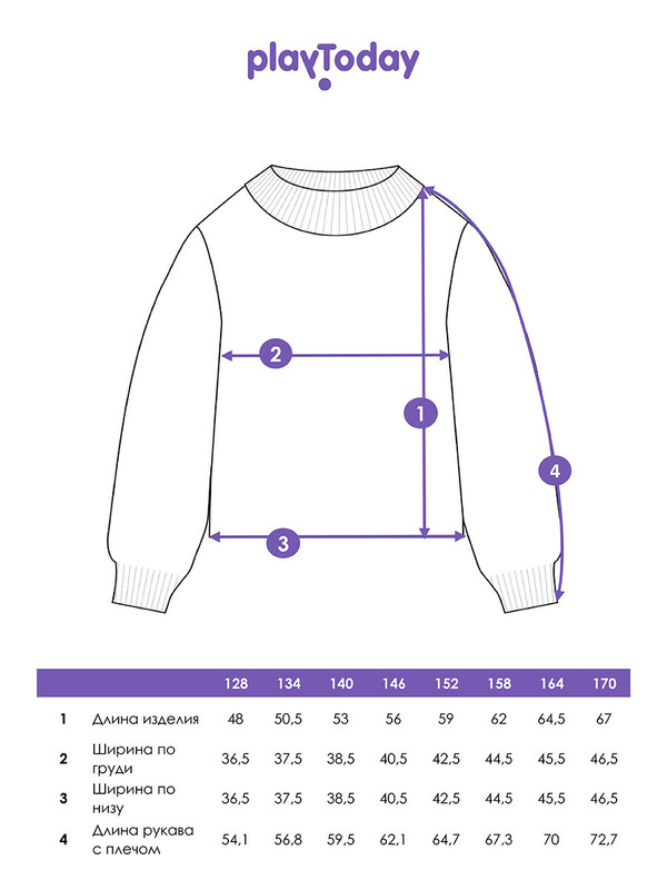Производитель: PlayToday Джемпер из вязаного трикотажа. 50% вискоза. Вискоза отличается высокой гигроскопичностью - она впитывает влагу и отлично сохраняет тепло. Горловина, манжеты и низ изделия в рубчик.