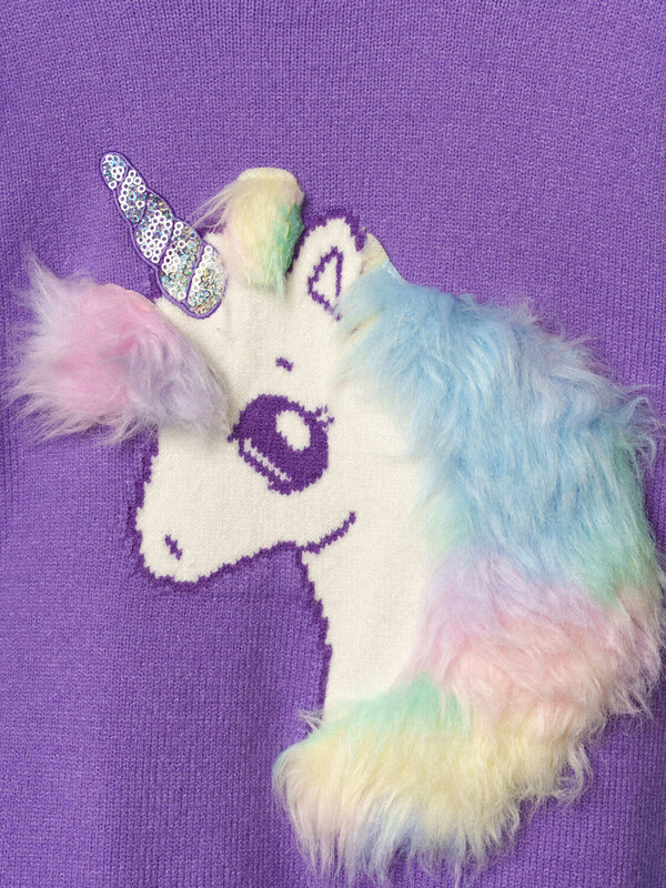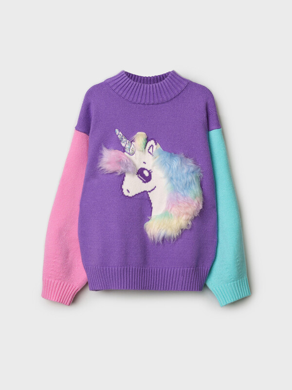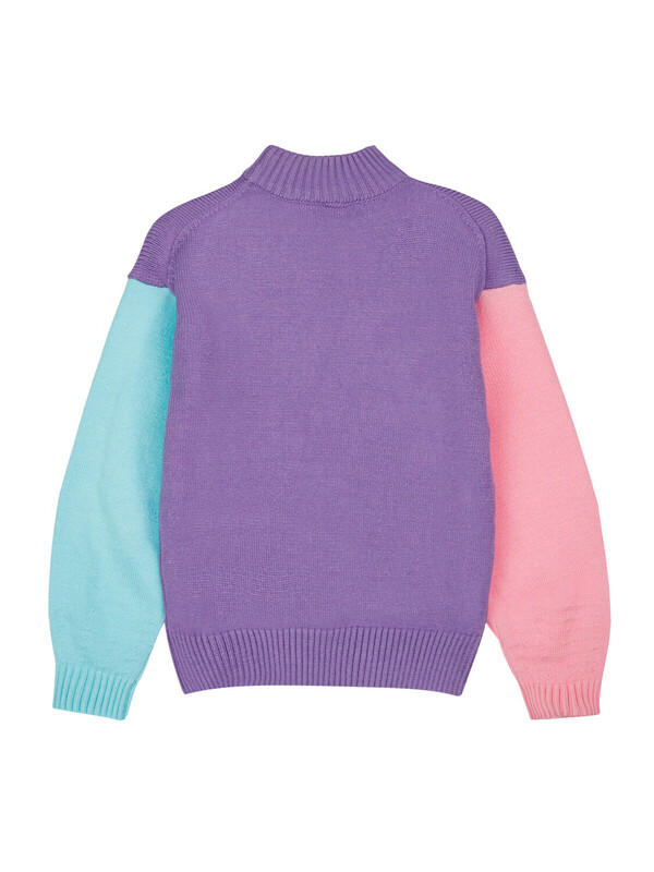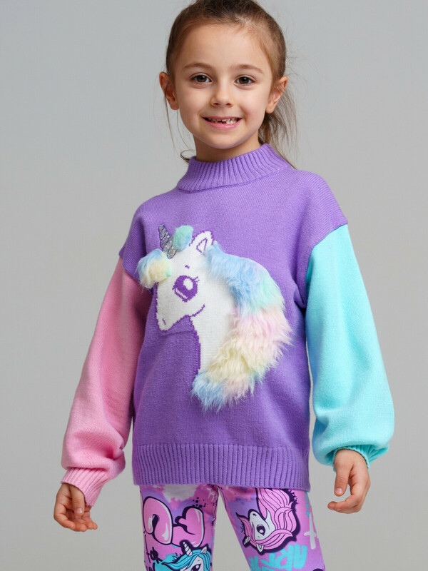 Свитер детский для девочки. Свитер из вязаного трикотажа с добавленим вискозы. Модный свитер жаккардовой вязки с высоким содержанием вискозы. Вискоза хорошо поглощает влагу, отлично пропускают воздух. Изделия приятны к телу, и не вызывают раздражения. Модель из капсульной коллекции UNICORN KUROMI (ЮНИКОРН КОРОМИ). Соберите полный образ в едином стиле!