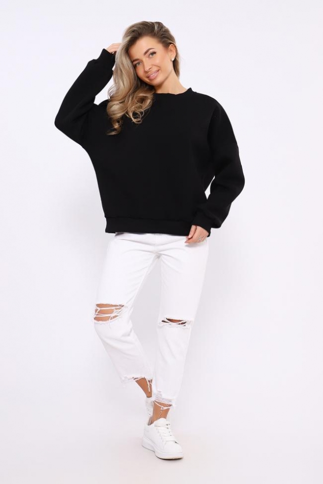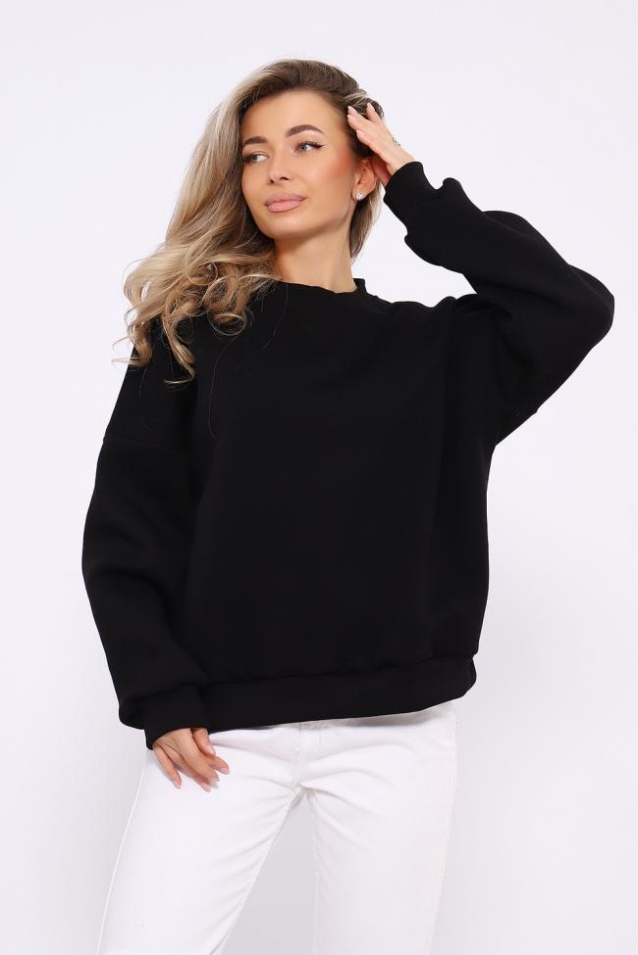 Свитшот из футера с начесом свободного кроя с длинными рукавами на манжетах и фигурным воротником.