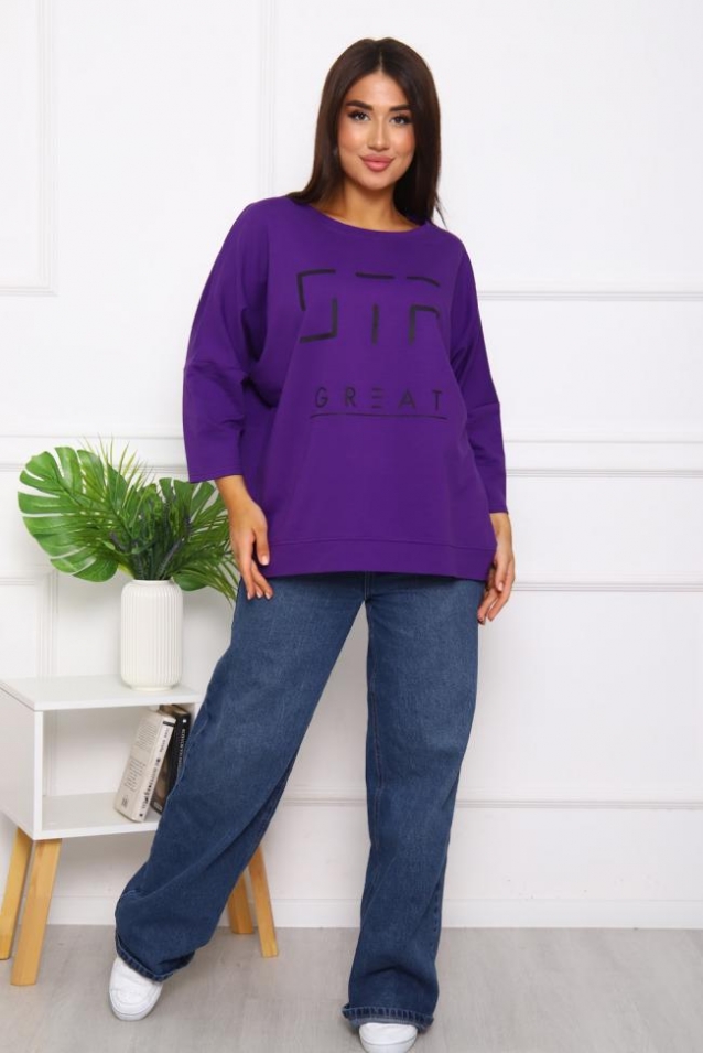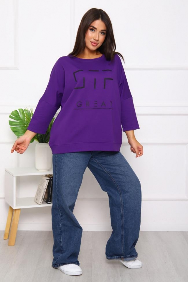 Свитшот 375702 оверсайз трикотажный (Фиолетовый)