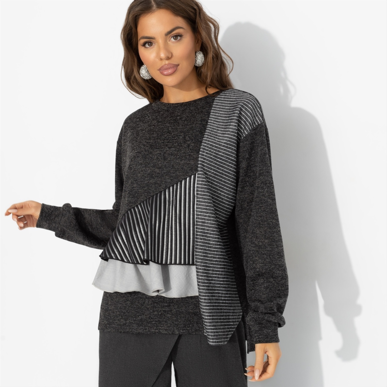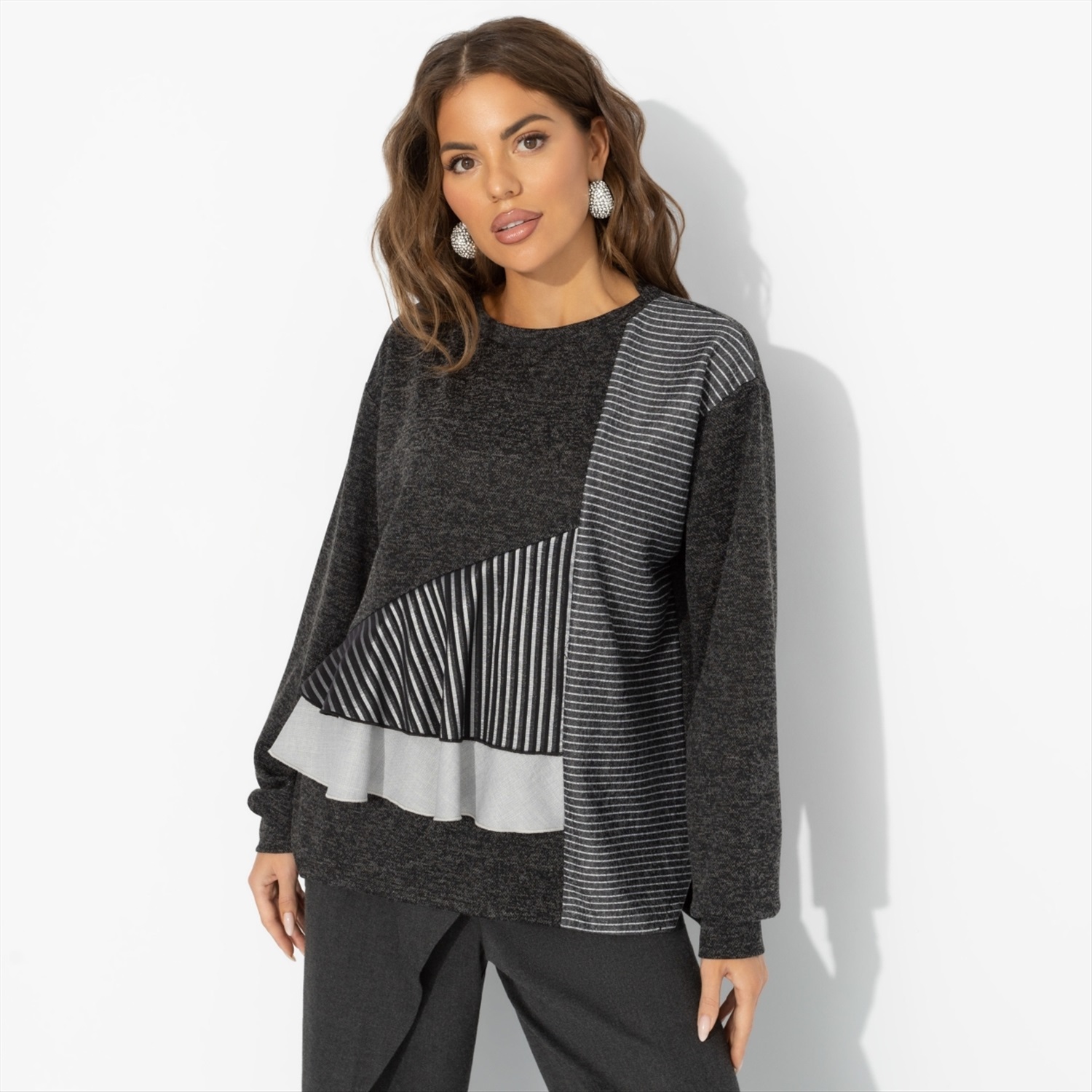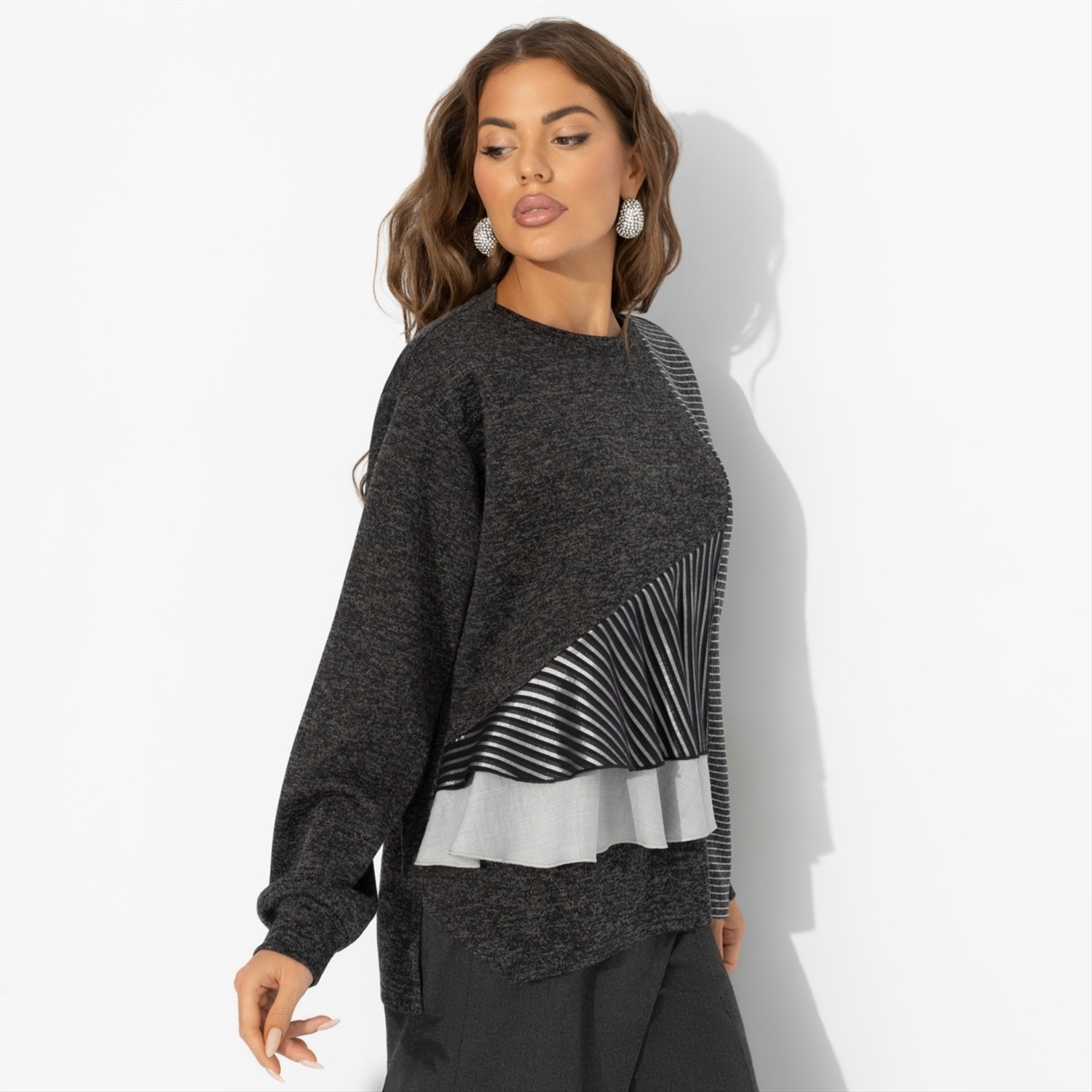 Динамика, неожиданный твист ‒ как в streetstyle-хронике с последних недель моды. Этот свитшот ЧАРУТТИ уходит от привычных рамок: микс полос, фактур и архитектурных линий притягивает взгляд и делает образ запоминающимся. Каждый штрих ‒ манифест индивидуальности. Ваш стиль навсегда останется в памяти тех, кто однажды вас увидел. Асимметричный свитшот из комбинации тканей для поклонниц высокой моды, ready-to-wear и дерзких визуальных экспериментов!