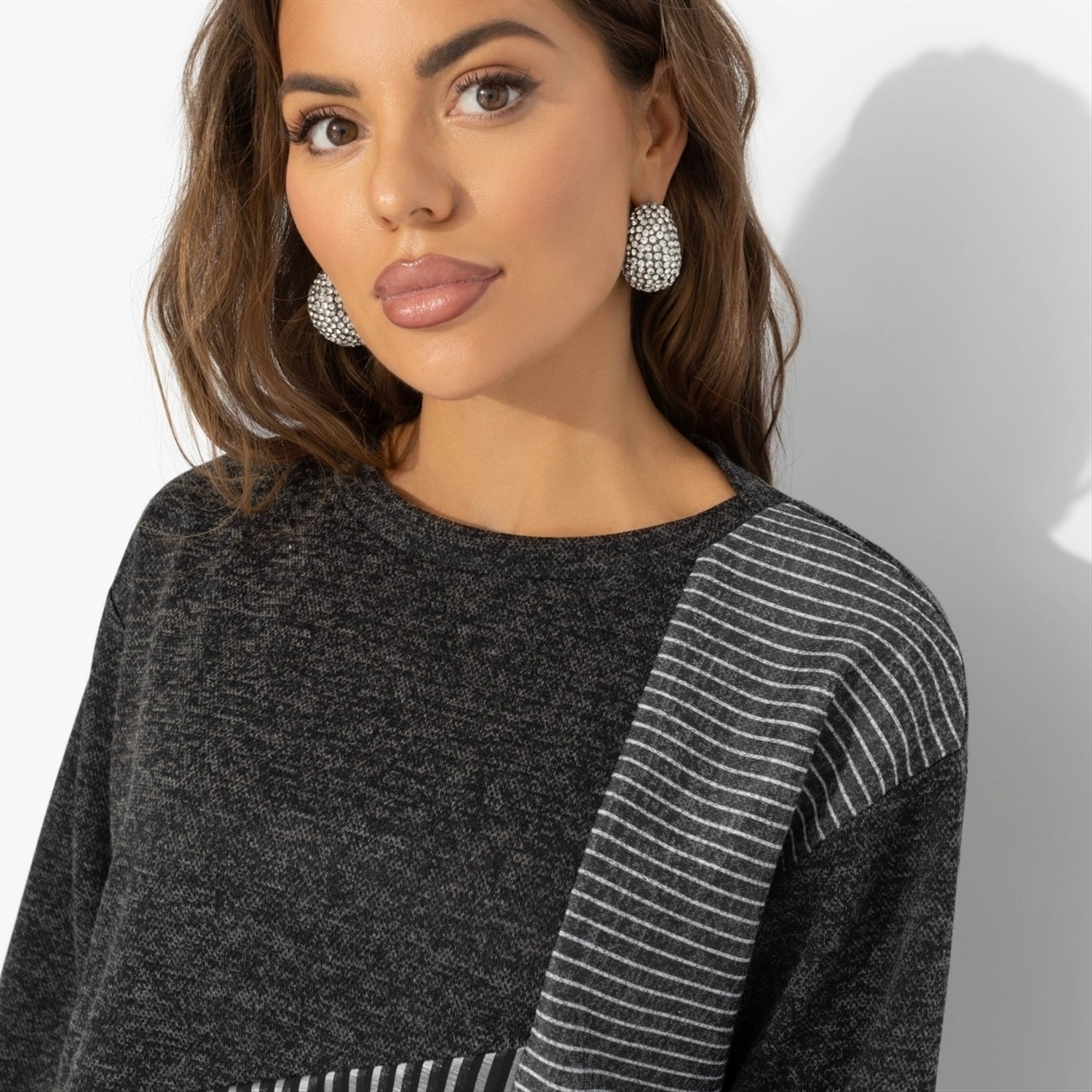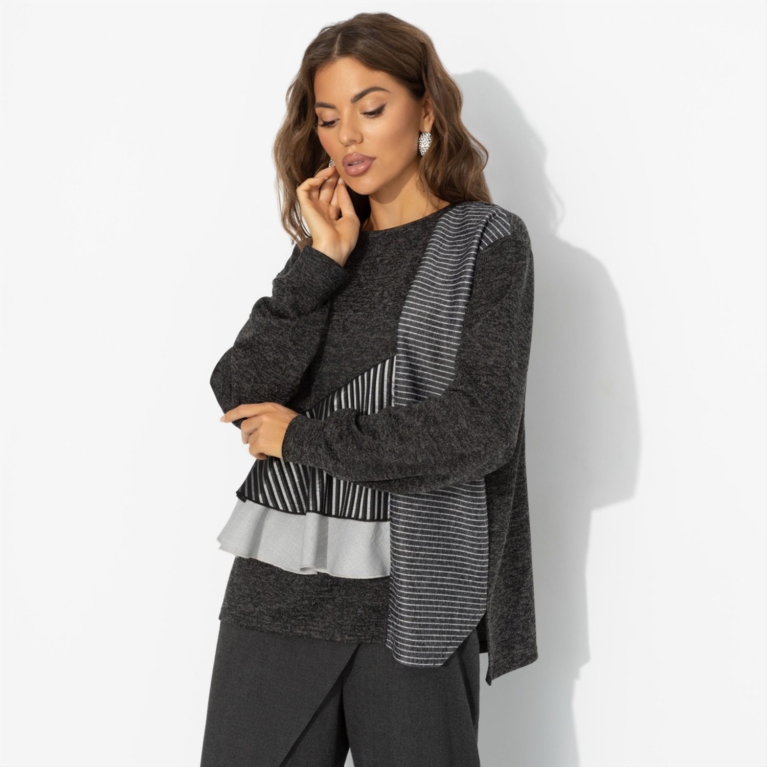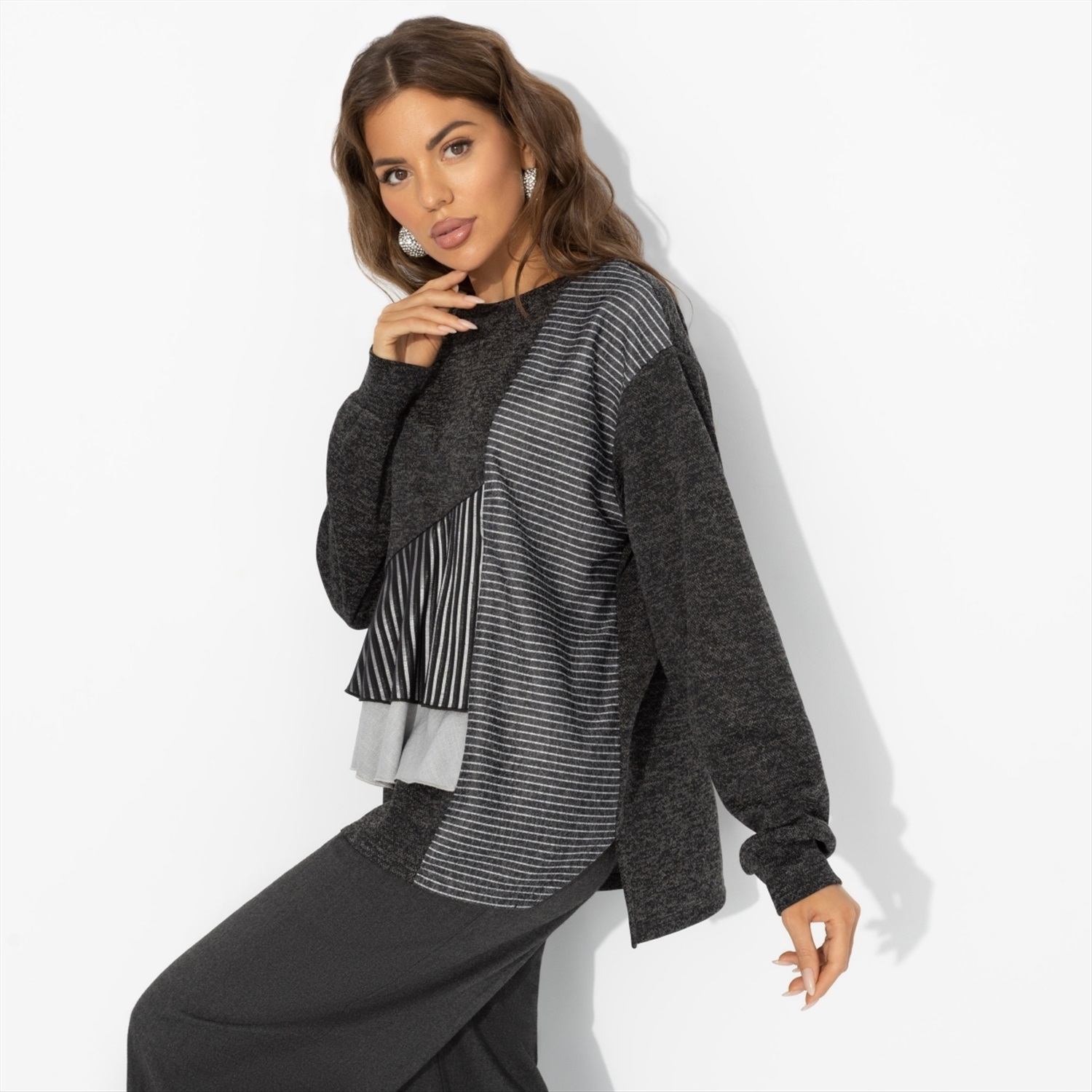 Динамика, неожиданный твист ‒ как в streetstyle-хронике с последних недель моды. Этот свитшот ЧАРУТТИ уходит от привычных рамок: микс полос, фактур и архитектурных линий притягивает взгляд и делает образ запоминающимся. Каждый штрих ‒ манифест индивидуальности. Ваш стиль навсегда останется в памяти тех, кто однажды вас увидел. Асимметричный свитшот из комбинации тканей для поклонниц высокой моды, ready-to-wear и дерзких визуальных экспериментов!