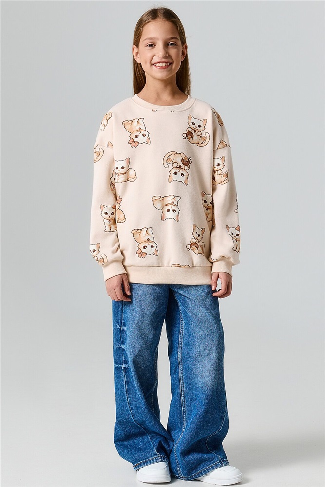Джемпер свободного силуэта. Рукава длинные, втачные. Линия плеча спущена. Перед и спинка цельнокроенные. Горловина круглой формы обработана обтачкой из рибаны. По низу рукавов и джемпера притачены манжеты и пояс из рибаны.