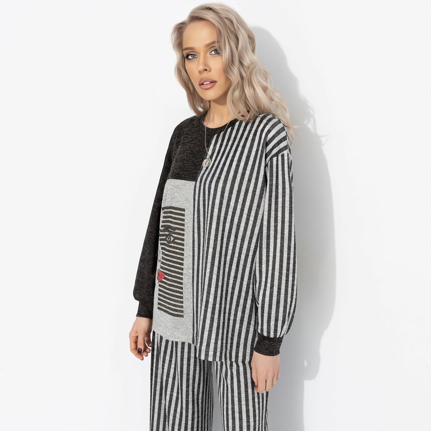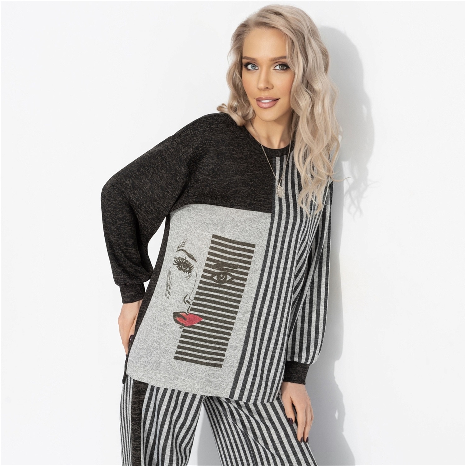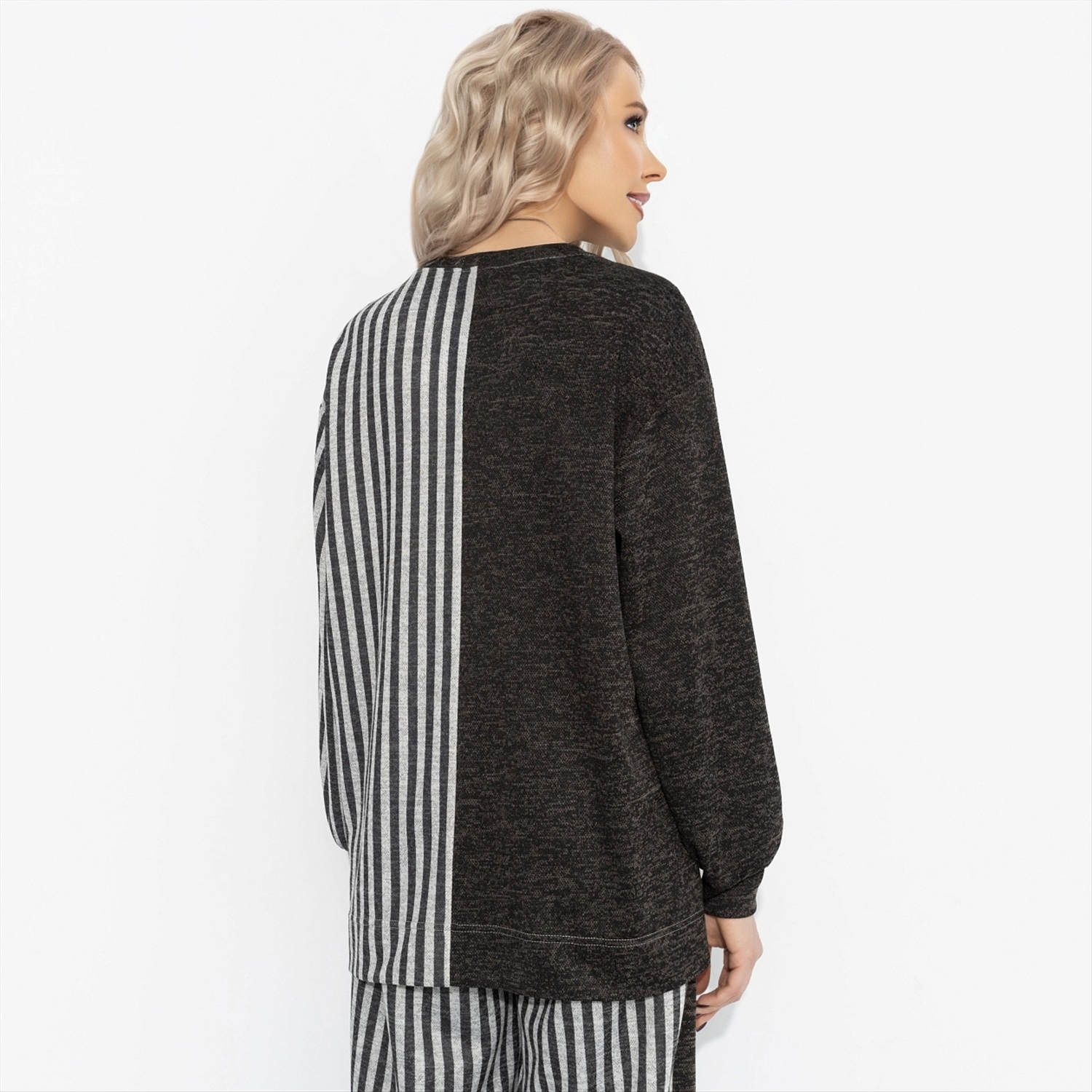 Представь утро, когда не нужно никуда спешить. Ты наливаешь кофе, включаешь любимый плейлист и снимаешь с плечиков любимый свитшот. Он как обещание себе: сегодня без самокритики, только комфорт, мягкие объятия меланжа и забота о себе – не напоказ, а настоящая. Свитшот свободного кроя. Спущенная линия плеча, округлый вырез, комфортная длина идеально подходят для любой фигуры. Контрастные блоки и полоска визуально стройнят. Манжеты на мягкой резинке. Комментарии к товару