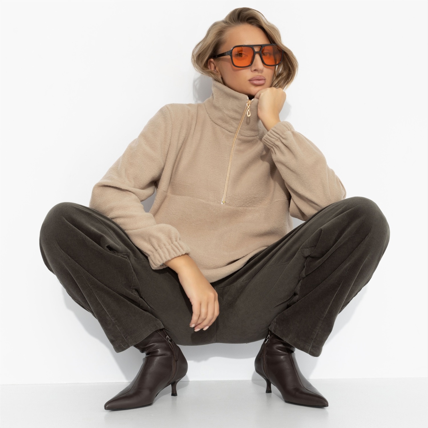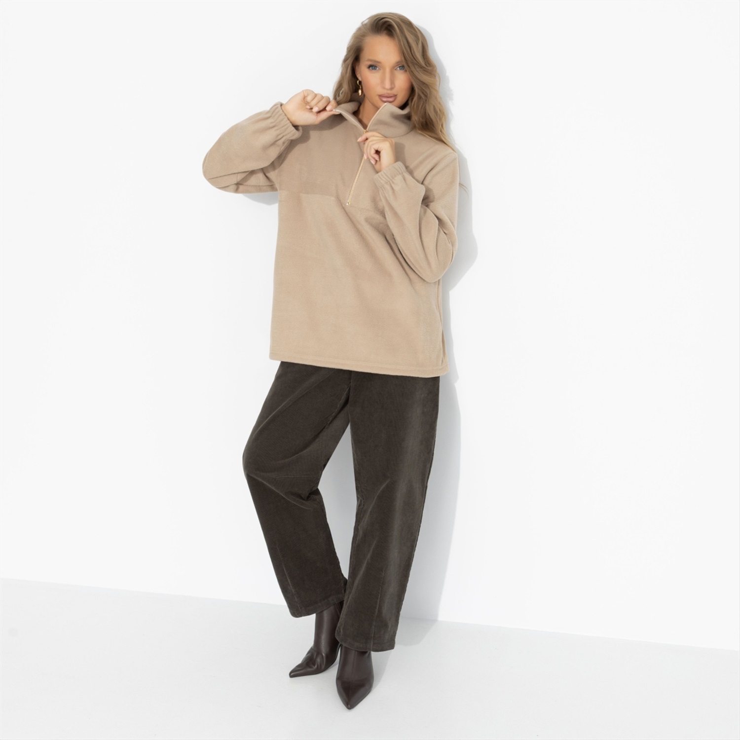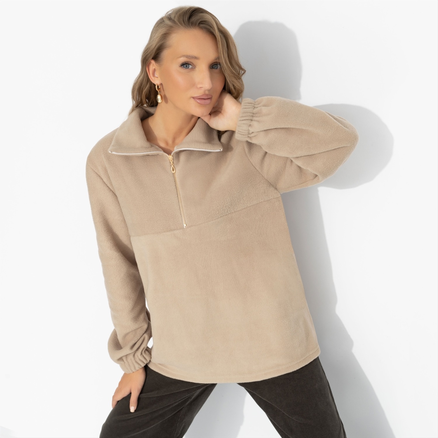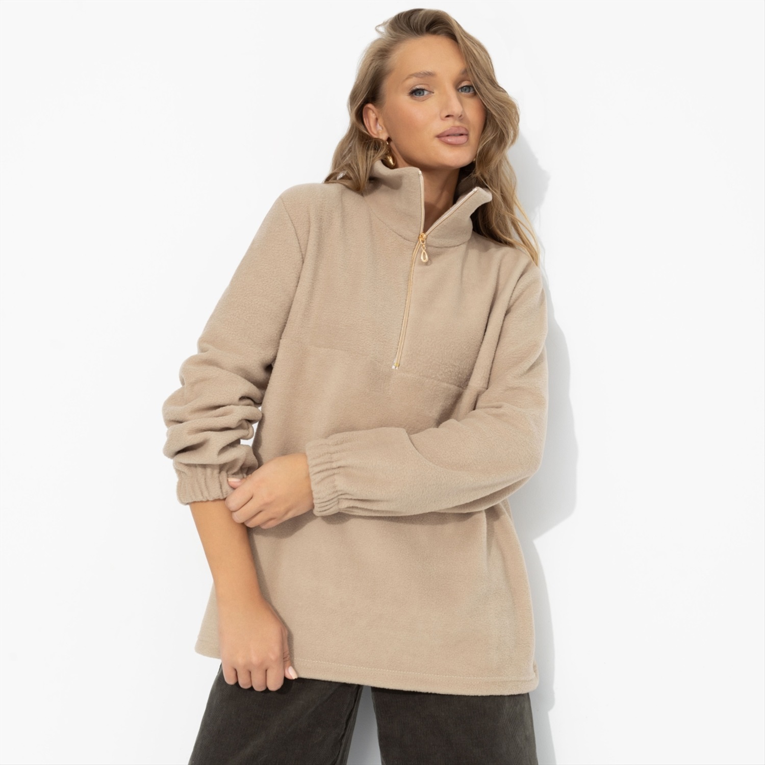 Пока другие кутаются в шарфы, она уже готова к переменам – с улыбкой, в уютном флисе и с чувством уверенности, что этот день будет тёплым во всех смыслах. Комфорт – её стиль, и в этом она всегда на шаг впереди. Свитшот из мягкого флиса с воротником-стойкой и короткой застёжкой-молнией. Приятная на ощупь ткань сохраняет тепло и форму, идеально подходит для прогулок, путешествий и городского отдыха. Комментарии к товару