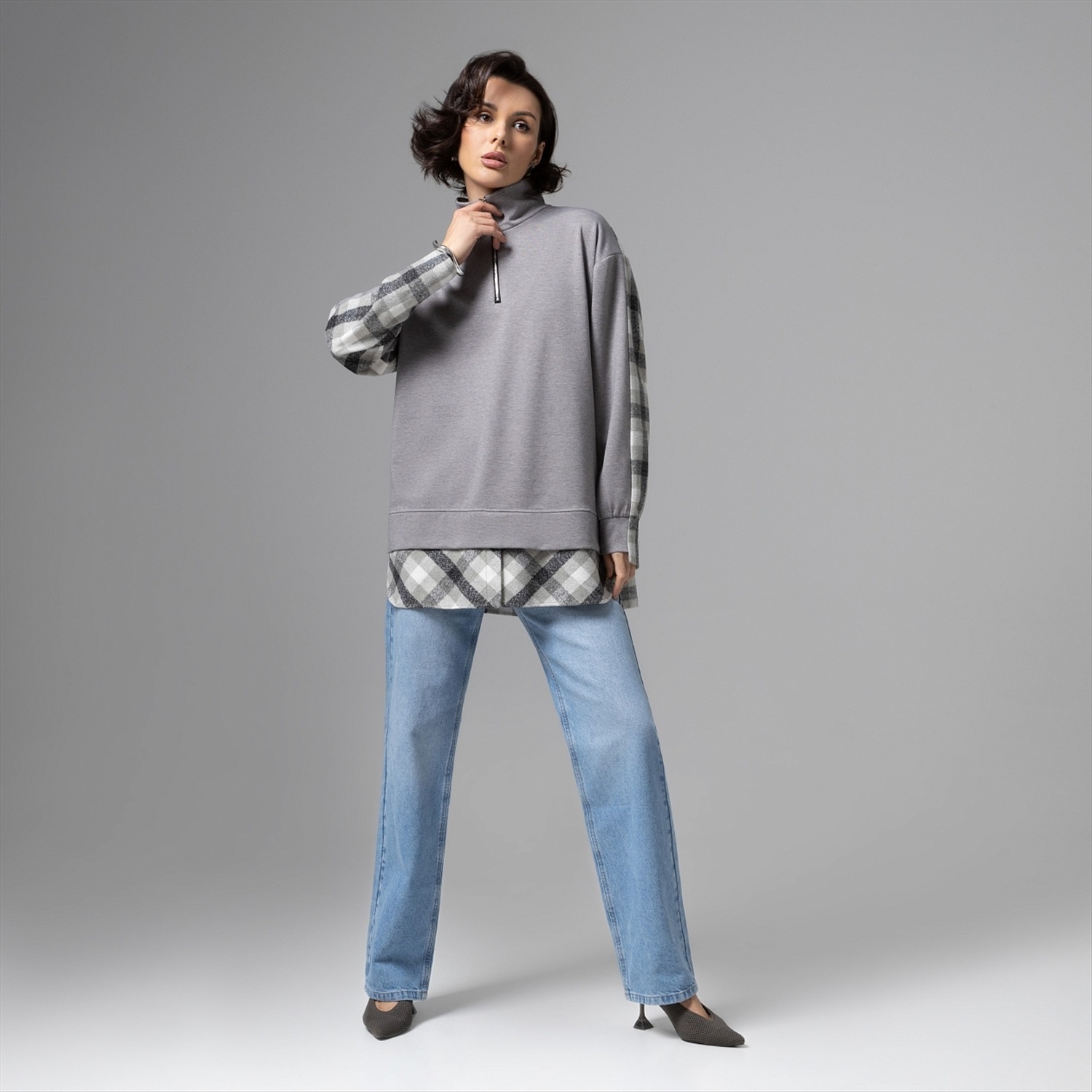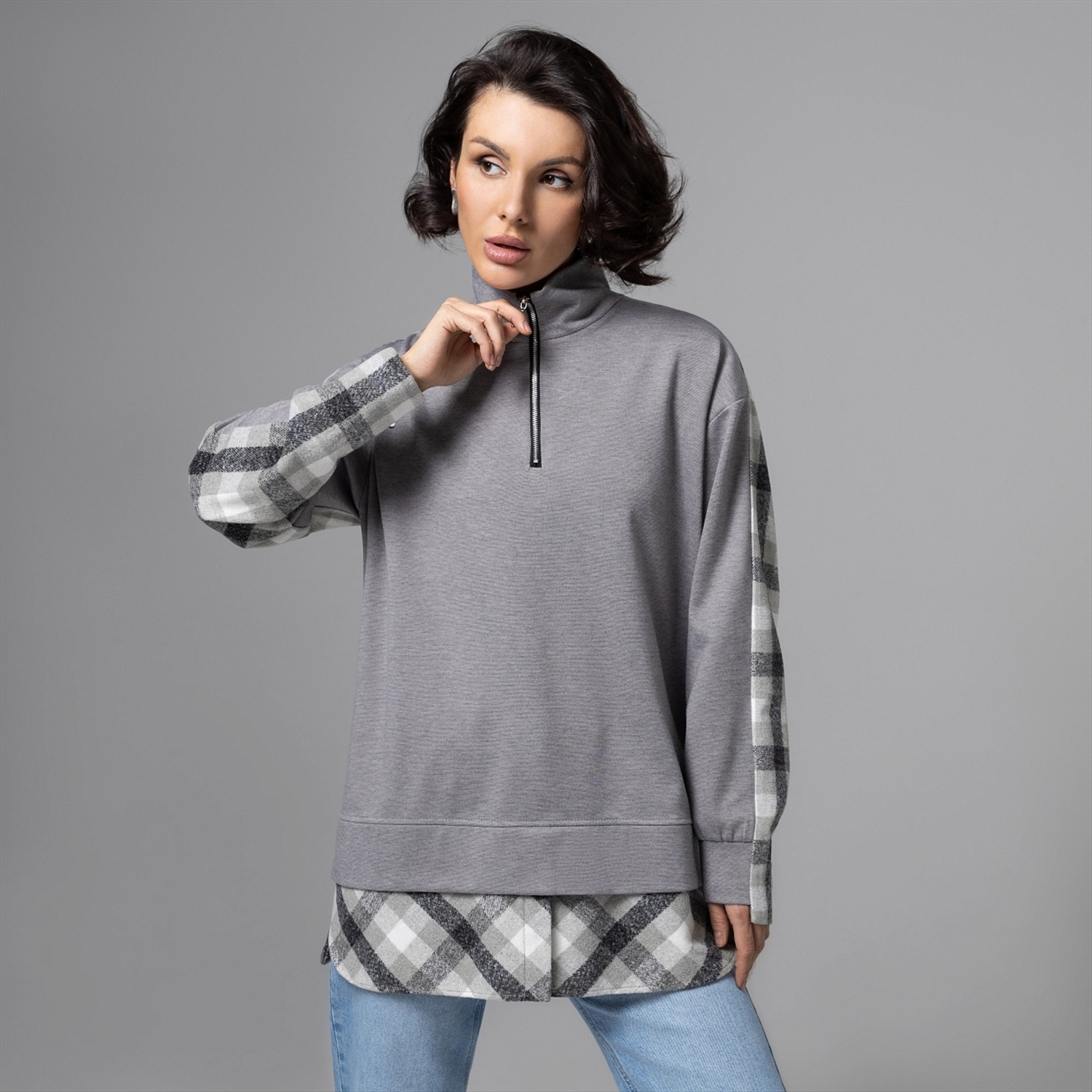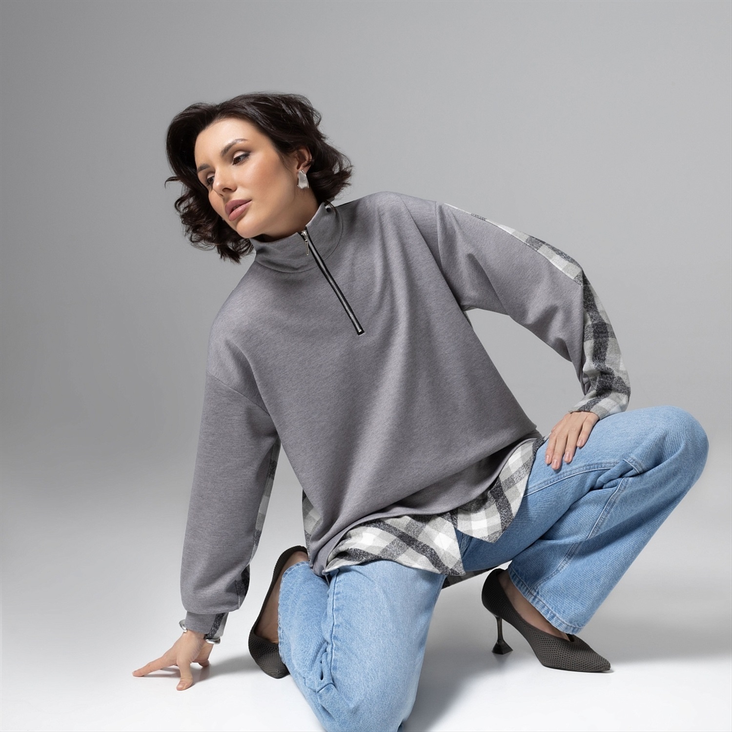Есть вещи, которые выглядят как кадр из твоего любимого фильма. Свитшот в оттенке пасмурного неба – именно такой: будто ндетый поверх клетчатой фланели, он напоминает многослойный образ героинь street‑style‑хроник, которые выходят из аэропорта уже готовыми к съемке. Неброский серый позволяет «играть» аксессуарами: добавьте шелковый платок, объемную сумку‑тоут и удобные мюли – и ваш дорожный образ мгновенно превращается в премиальный.