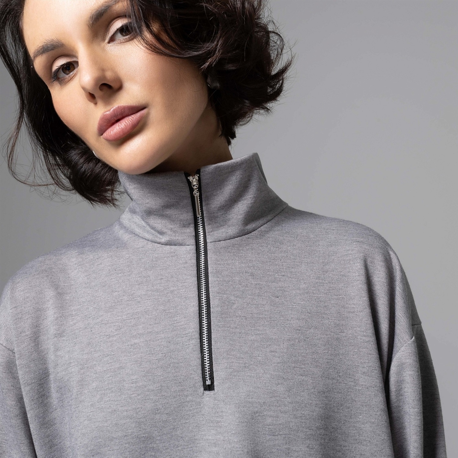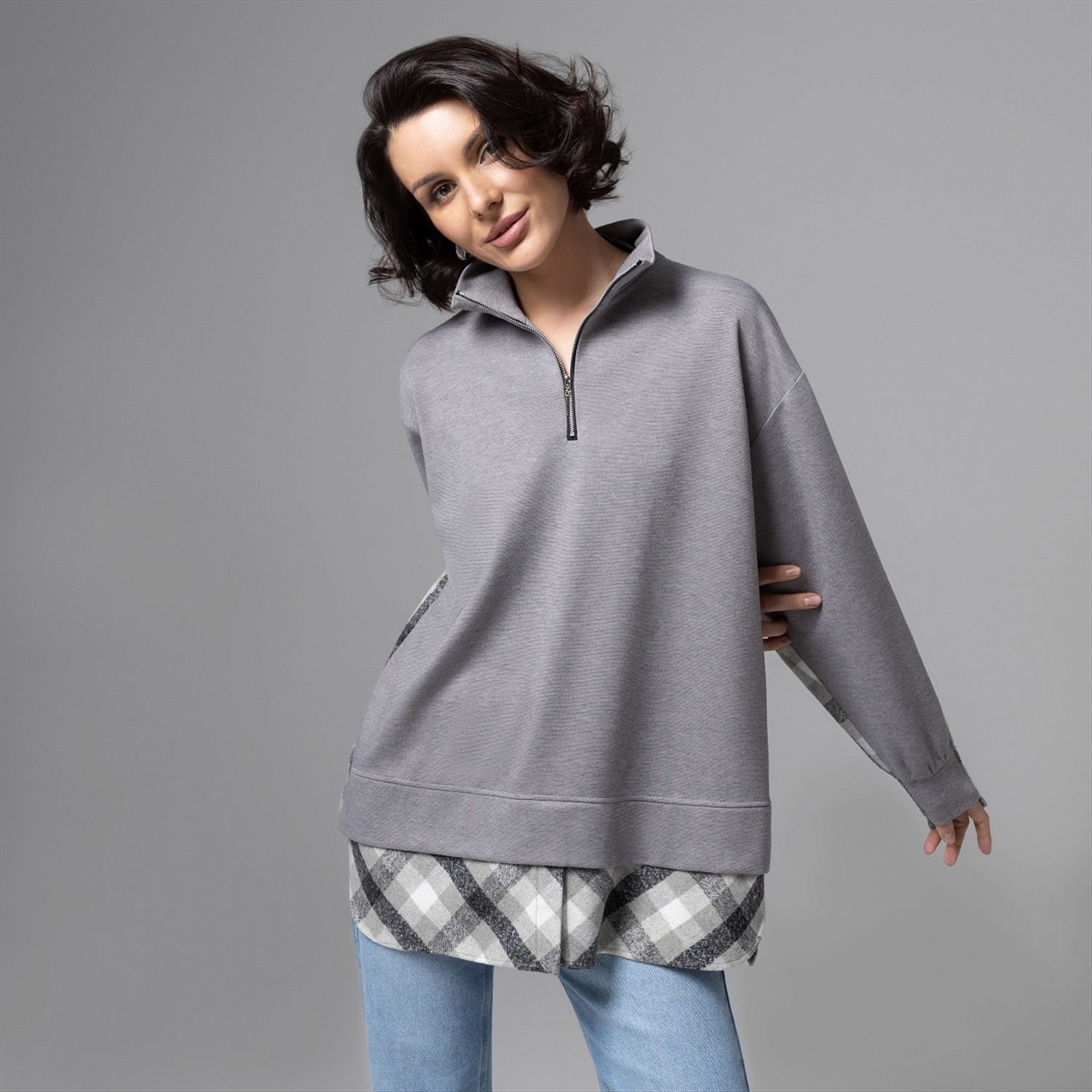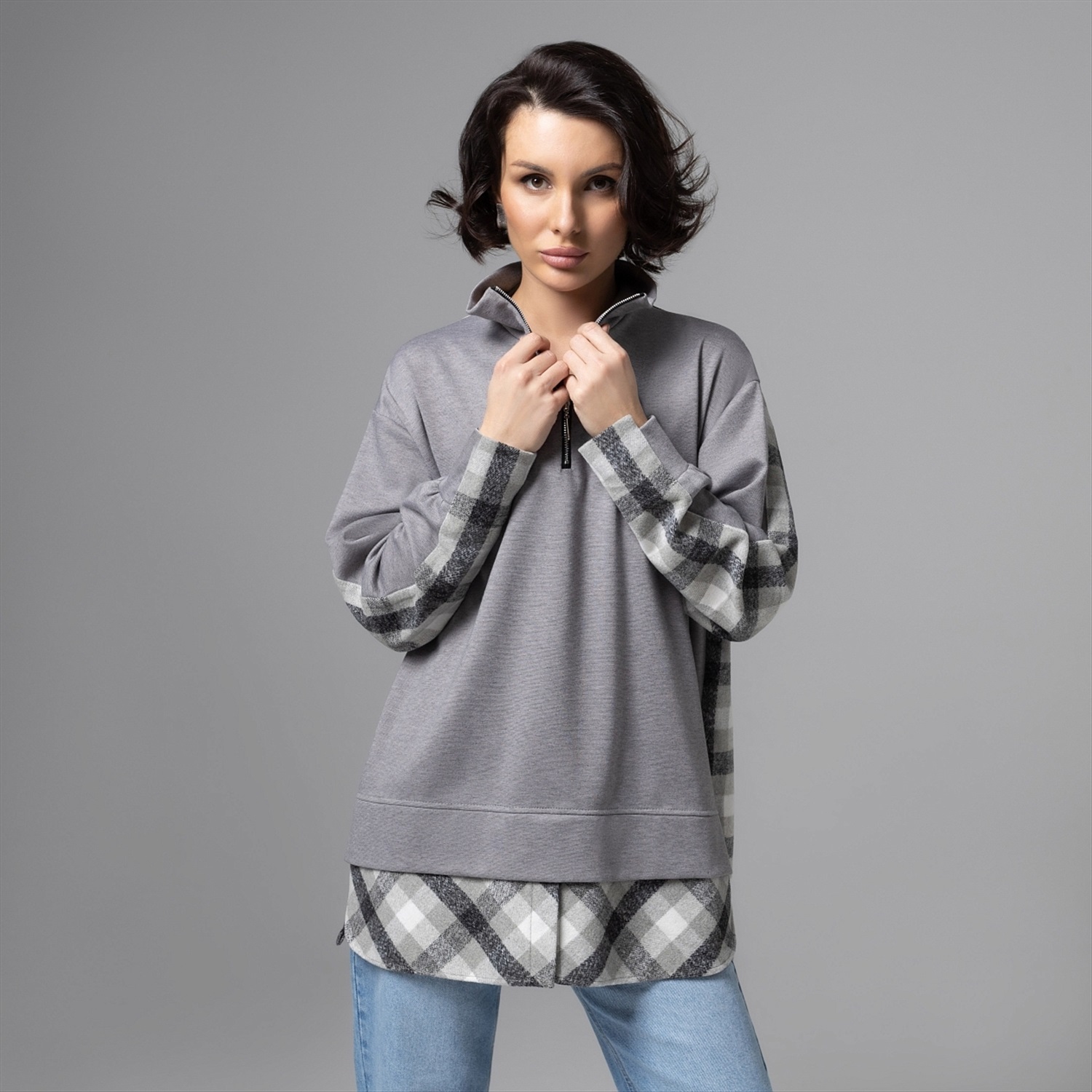 Есть вещи, которые выглядят как кадр из твоего любимого фильма. Свитшот в оттенке пасмурного неба – именно такой: будто ндетый поверх клетчатой фланели, он напоминает многослойный образ героинь street‑style‑хроник, которые выходят из аэропорта уже готовыми к съемке. Неброский серый позволяет «играть» аксессуарами: добавьте шелковый платок, объемную сумку‑тоут и удобные мюли – и ваш дорожный образ мгновенно превращается в премиальный.