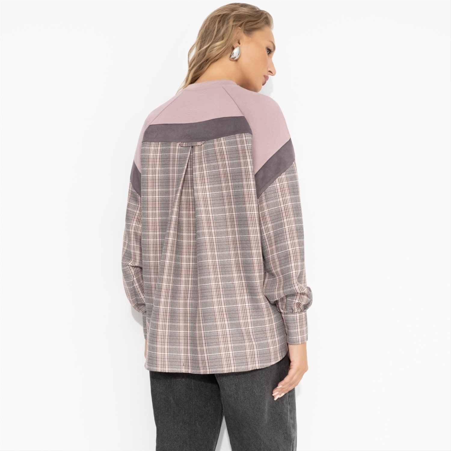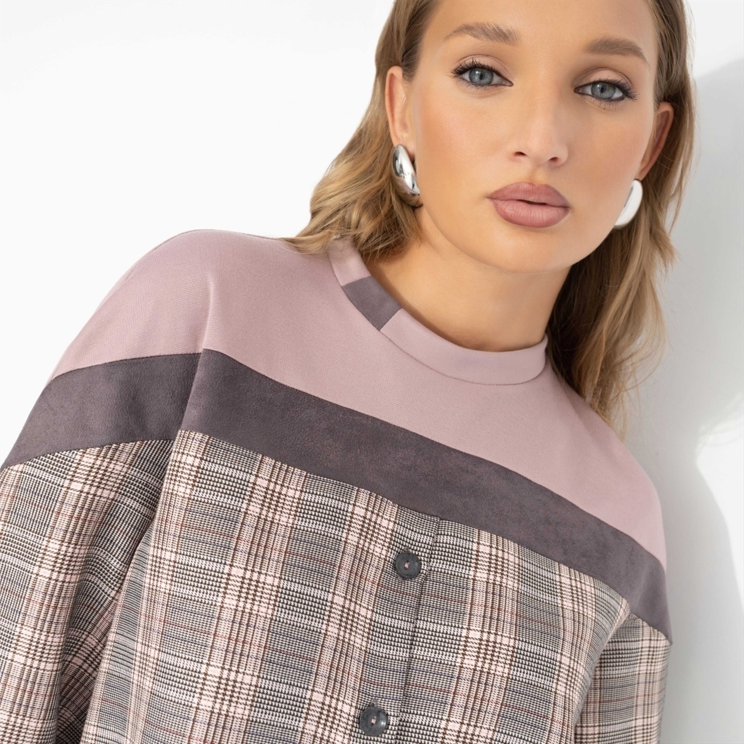 Хочу все и сразу! Мягкий трикотаж понтирома, акценты из эко-замши и клетчатая вставка придают свитшоту сложный, но гармоничный ритм. Просто будь собой – и день сложится идеально. Свитшот свободного кроя в комбинации нескольких видов ткани. Комментарии к товару