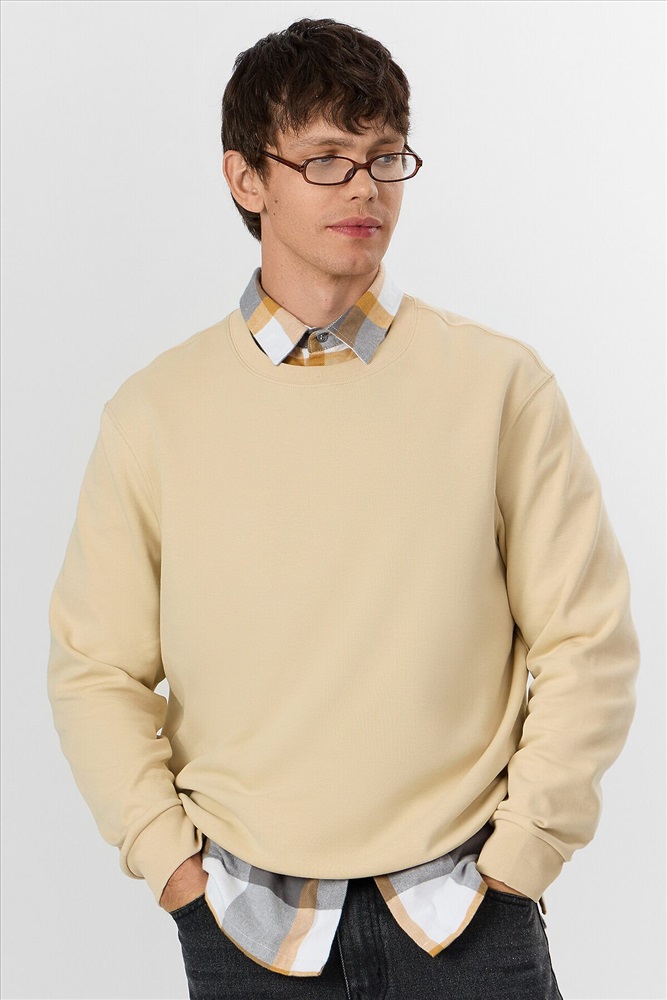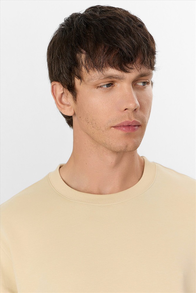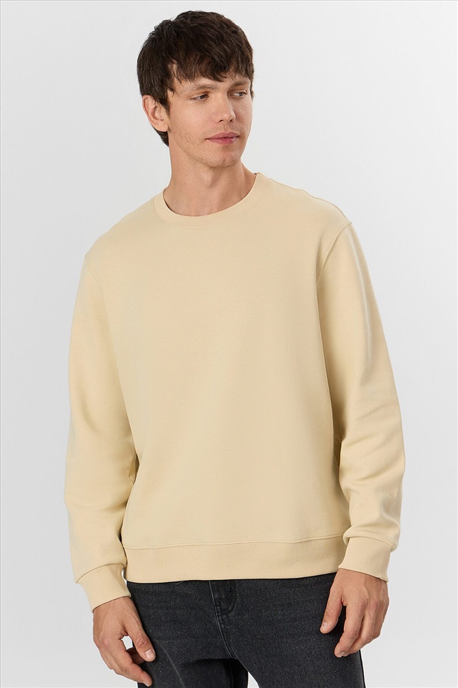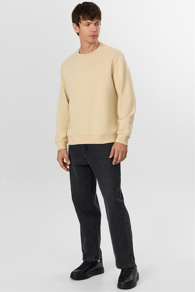 Толстовка мужская изготовлена из трикотажного полотна интерлок. Толстовка свободная, прямая. Горловина округлой формы обработна обтачкой из рибаны. Рукава втачные длинные. Линия плеча слегка спущена. По окату рукава и плечевым швам отделочные строчки. По низу рукава отрезная манжета из рибаны. Центральная застежка на тесьму-молнию.По низу изделия отрезной пояс из рибаны. По шву втачивая пояса - отделочные строчки.
