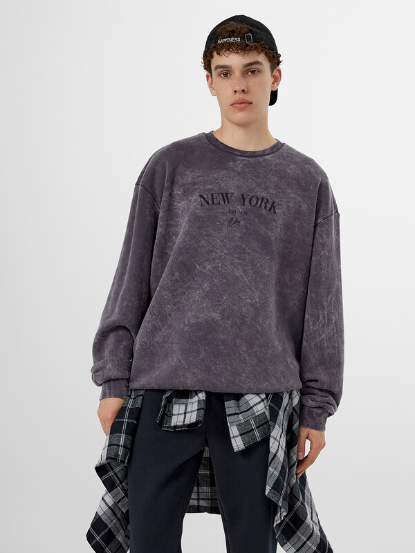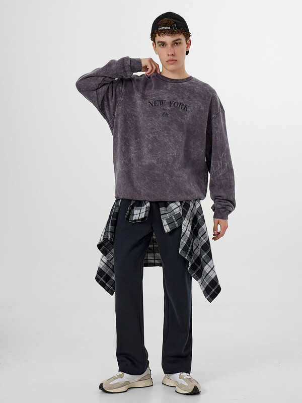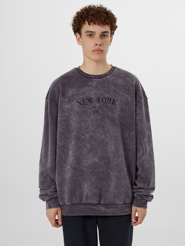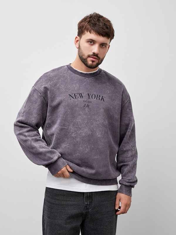 Теплый мужской свитшот из трикотажного футера с нежным подчесом. Силуэт прямой, вырез классический – круглый, не глубокий. Рукава длинные, на манжетах из рибаны. Спущенная линия плеча дарит свободу движений. Пояс, проходящий по нижнему срезу, также сделан из рибаны. Отличный свитшот для городских образов.