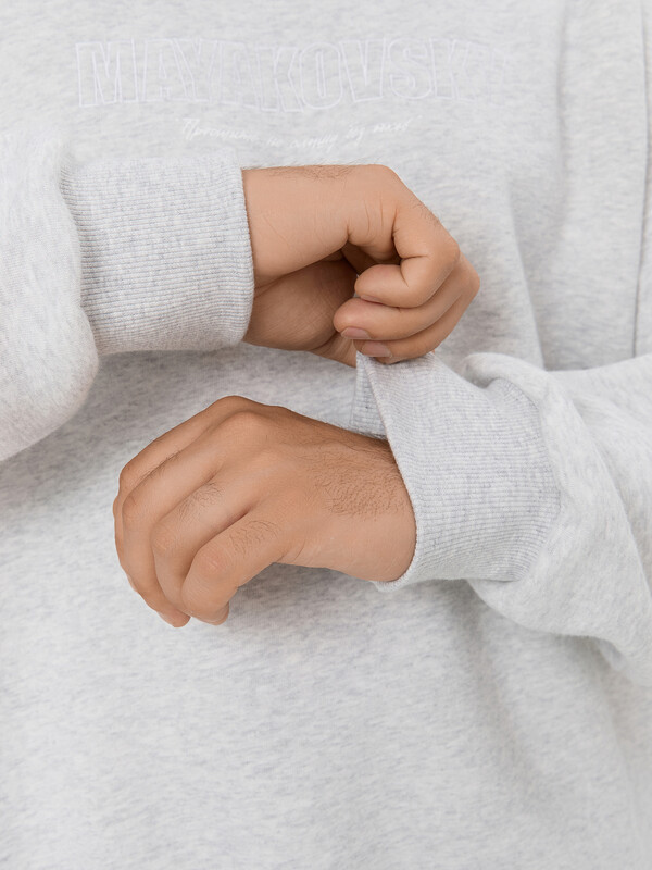 Рукава втачные длинные с отрезными манжетами из рибаны. Линия плеча спущена, пройма углублена. Плечевые швы смещены в сторону переда.
