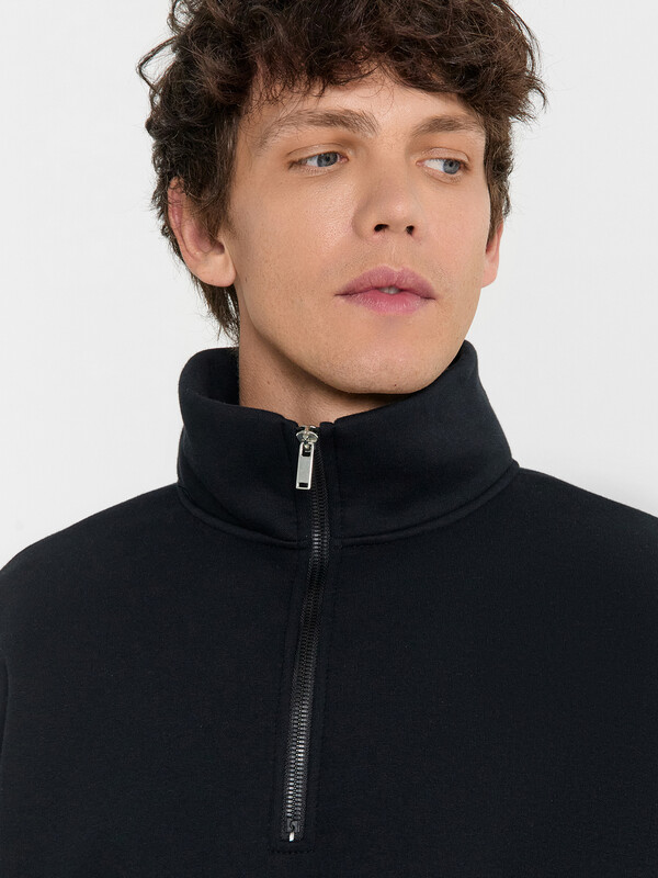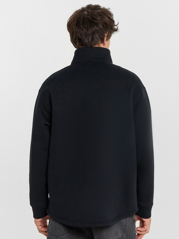Горловина округлой формы с воротником стойкой из основного полотна. Шов втачивания горловины закрыт тесьмой хб.