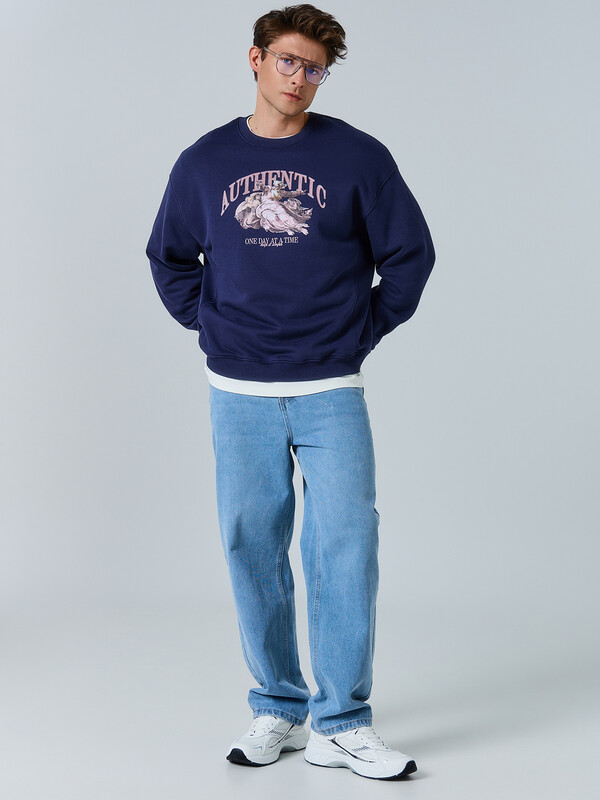 Мужской свитшот свободного силуэта станет отличным выбором для тех, кто ценит комфорт и стиль. Он имеет круглый вырез и длинные рукава со спущенной линией плеча, что придает образу расслабленность и непринужденность. Манжеты из рибаны гармонируют со вставкой по нижнему краю изделия, создавая завершенный и стильный вид. Эта модель выполнена из футера без подчеса, что делает его легким и воздухопроницаемым. Такой материал отличается тем, что не создает излишней теплоты, идеально подходя для межсезонья или для ношения в помещении. Футер мягкий на ощупь, приятный к телу и устойчивый к износу, что обеспечивает долговечность изделия. Добавьте в свой гардероб этот универсальный свитшот, который легко сочетается с различными стилями и подходит для любых повседневных образов.